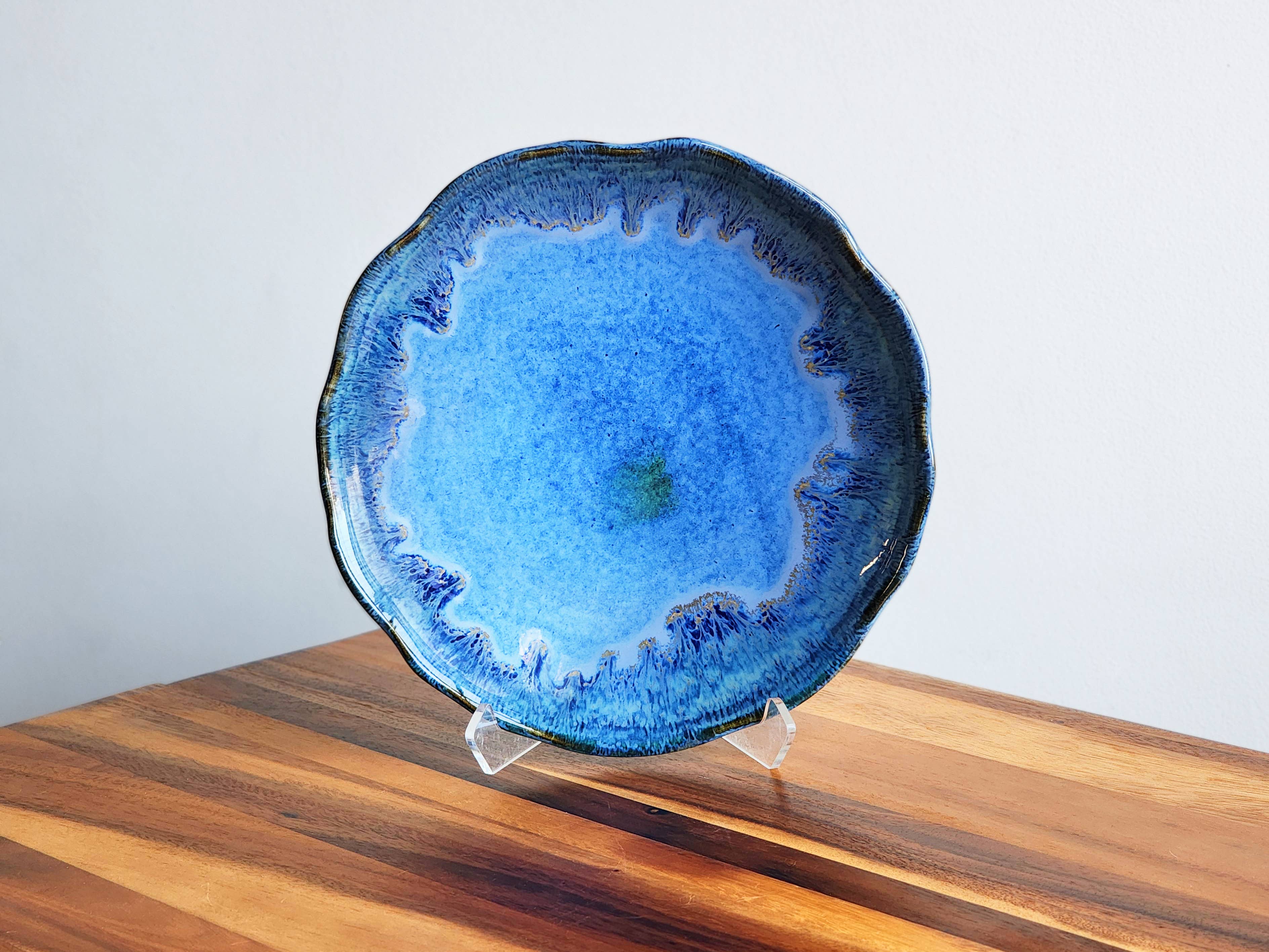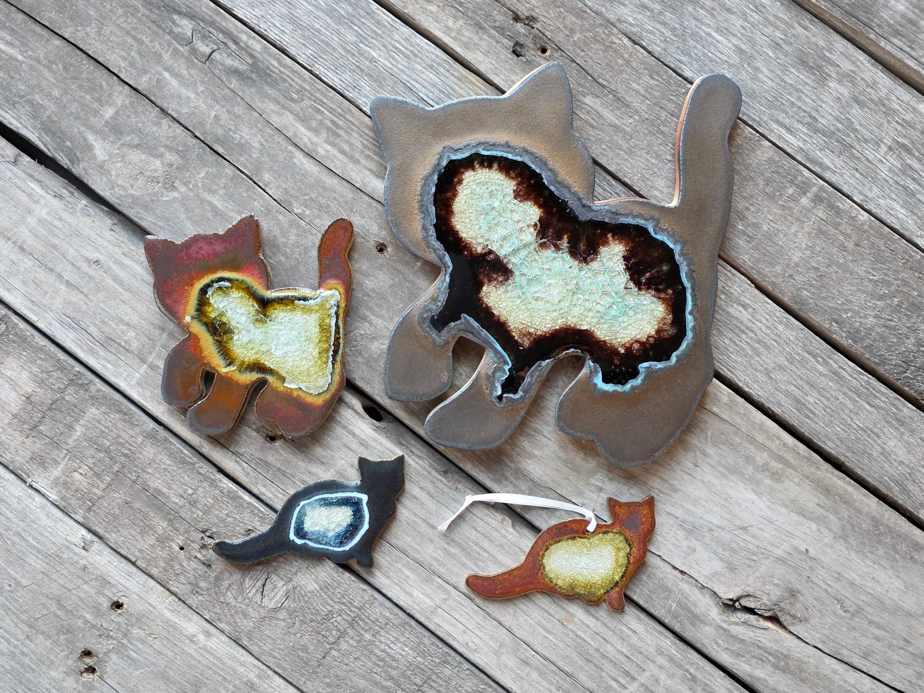 We have sold Dock 6 for several years. Her work always arrives more beautiful than imagined. We carry a variety and all of her price points and her work sells very well in our gift gallery. The glass fired makes every piece like a beautiful geode. Love