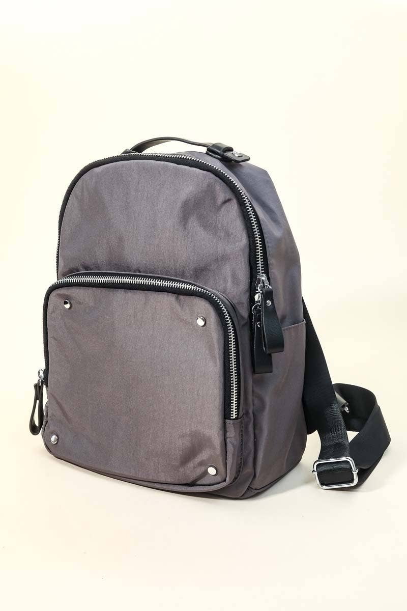 Sleek and functional with a downtown attitude, this backpack is the smart solution for a life on the go. This bag includes a snap-out pouch that doubles as a crossbody/belt bag (2 bags in one!). Whether you’re looking for a hands-free diaper bag, a backpack for commuting to work or traveling, this backpack is the way to GO. Laptop sleeve fits most 15” laptops Includes an extra bag that can be worn as a crossbody or belt bag Keeps your shoes separate from everything else thanks to the footwear pocket Interior zipper releases the shoe compartment creating a deeper tote to give you more versatility Drawstring pouch Adjustable, super padded straps for extra comfort 2 water bottle pockets for all your beverage needs L: 12 ½” x H: 15”(front) 16” (back) x W: 5” Snap-out pouch: W: 1.75” x 8” H: 5” Strap width: 2 ½” Strap length: 22” - 31” Removable strap: 25 ½” - 47 ½ “ Strap width: 1 ½” Drawstring pouch: 8” x 10” Interior seamless zip pocket: 8” Padded compartment: 10” x 11” width 3 ½”