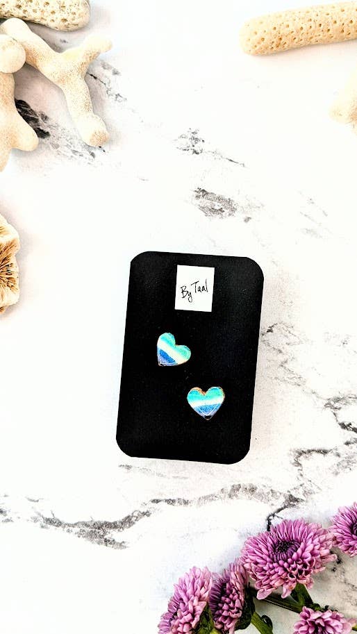 The post earrings in our Water Collection are designed using original metallic photographs that are set by hand under a beautiful 10mm magnifying glass dome. The posts are surgical steel and hypoallergenic. Make it a set with the matching necklace, bangle bracelet. Or mix and match designs from the Water Collection to create your own style. Coastal, Ocean, Resort, Jewelry, Blue, Beach, Sea glass Jewelry, nautical jewelry, wave jewelry, resort wear, cape cod jewelry, beach inspired jewelry, Aqua, Teal