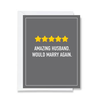 When the hubs really is the best. Or, you know, like he's really trying... Great Anniversary, Birthday or any day card for your husband! * Blank inside * A6 (4.5" x 6.25") * Recycled Kraft Brown Envelope Included * Printed on bright white matte card stock * Made and printed in the USA. ©Striped Hat Studio.