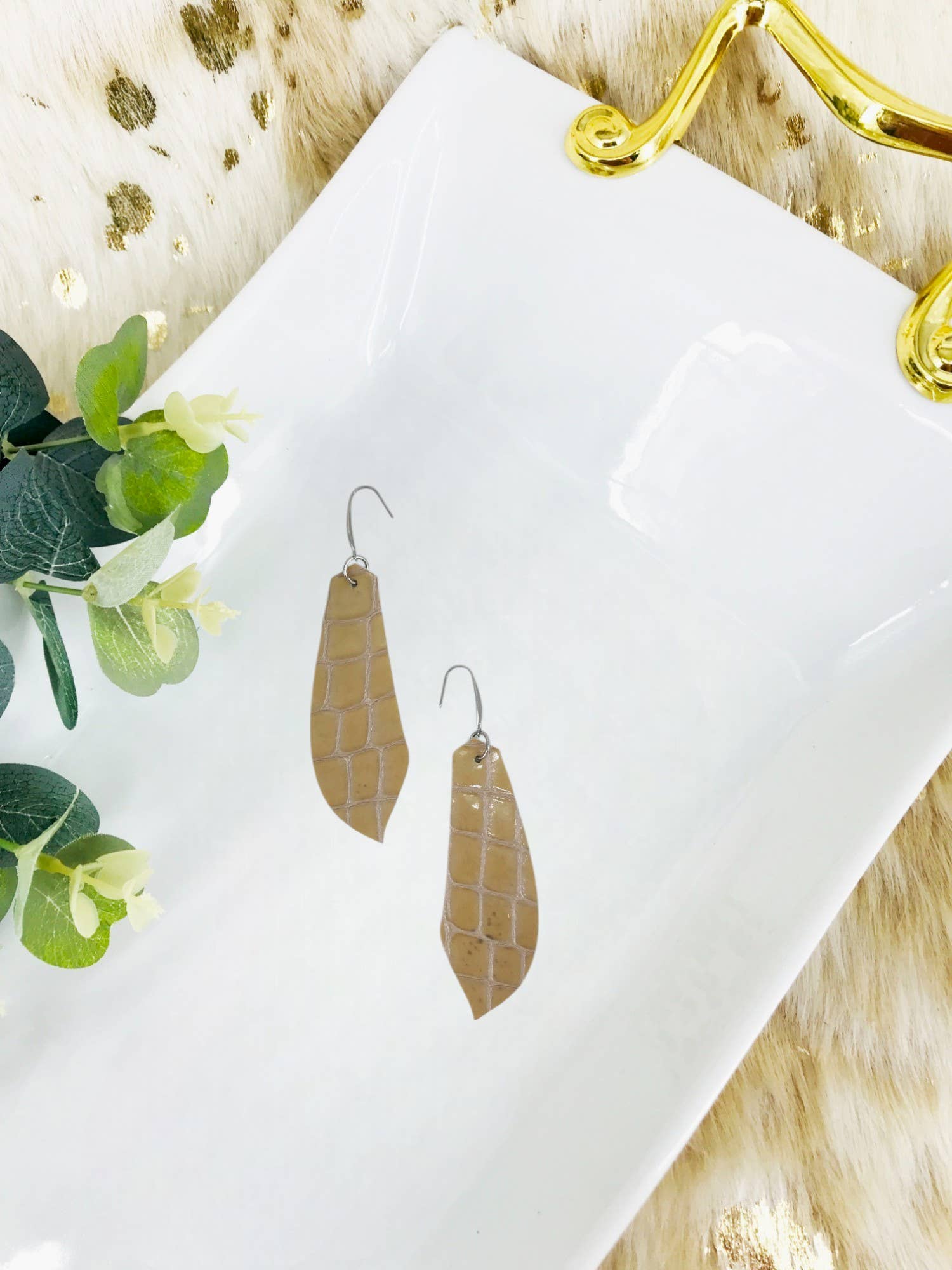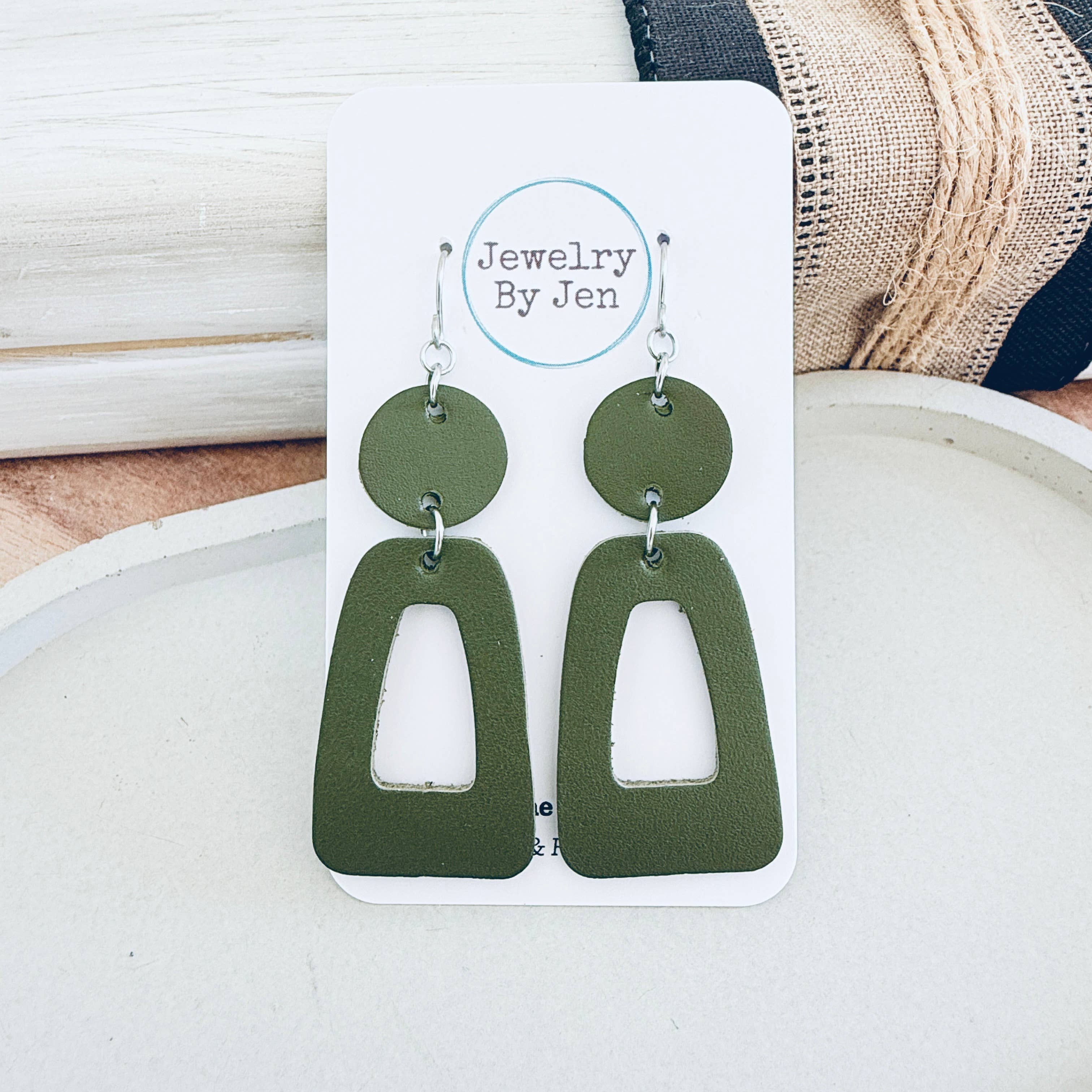 These leather earrings measure approx 3/4" wide, 3" drop with the hook. These earrings have raw brass ear wires and feature raw brass accents. Please note raw brass will naturally oxidize over time, creating a beautiful vintage-like patina on your earrings. Each pair of earrings come on an earring card with clear silicone backers. All orders come beautifully packaged in reusable muslin bags, perfect for gifting! Our genuine leather earrings are hand-cut therefore each piece is unique. We also pay close attention to the natural variations, wrinkles, and creases of the leather which adds to the popular slightly distressed look.