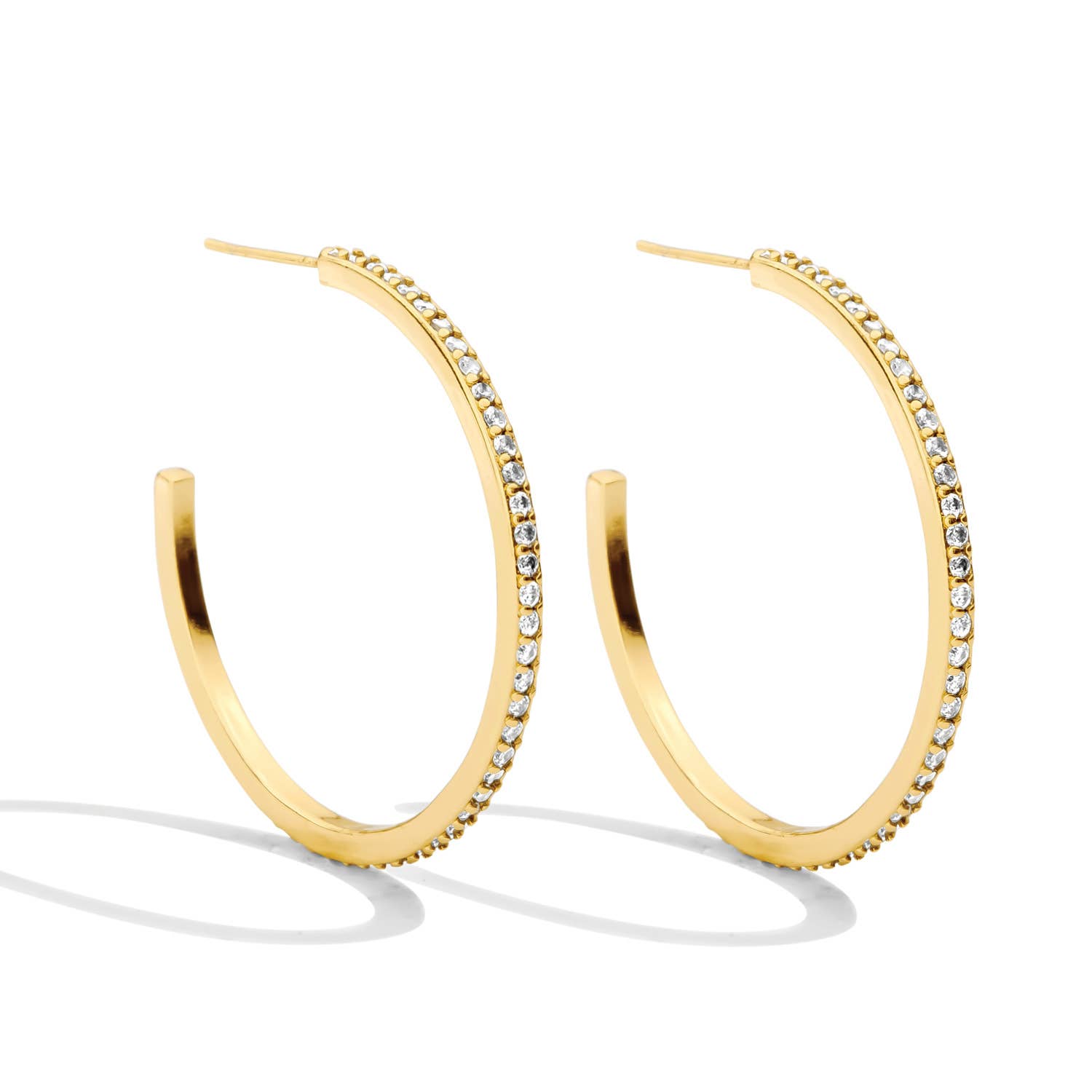 PAIR OF 18K GOLD PLATED CRYSTAL RHINESTONE PAVE HOOP EARRING Diameter: 3.5cm, 4.5cm, 5.5cm, 6.5cm, 7.5cm