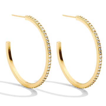 18K GOLD PLATED CRYSTAL RHINESTONE PAVE HOOP EARRING