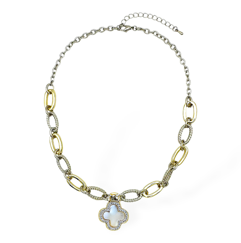 MOP Clover Multi Gold Charm Necklace