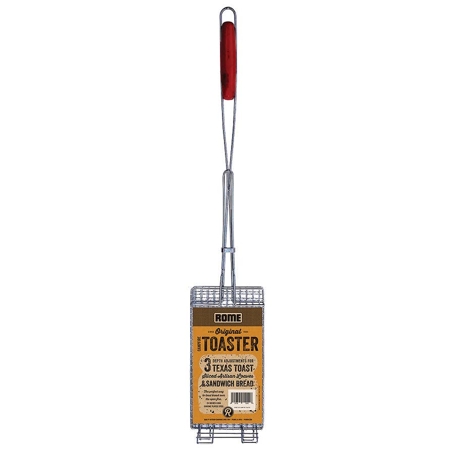 Rome's retro-styled steel popcorn popper looks nice hanging by the fireplace and makes great-tasting popcorn. Perfect for hearth, firepits & campfires. Easily disassembled without tools for car camping. Made from steel with BBQ-grade baked enamel finish. 3.5" depth x 9" diameter pan cooks 2 quarts at a time. Also good for roasting chestnuts. 27" overall length. Turned wood handle with a leather strap. Popper also disassembles (without tools) for car camping and easy merchandising. Materials & dimensions. Cooking dim: 3.5" depth x 9" diameter cooking surface. 27" overall length including rod/handle. Steel with BBQ-grade baked enamel finish, wood handle, and hanging loop. The case pack is 6. Must order in multiples of 6. Case pack dimensions: 9.5″ × 13.5″ × 21″. Ship weight of each case: 16 lbs. MSRP: $38.00. Upc: 0-29794-12288-0. Designed by Rome Industries. Creating campfire memories for over 50 years.
