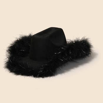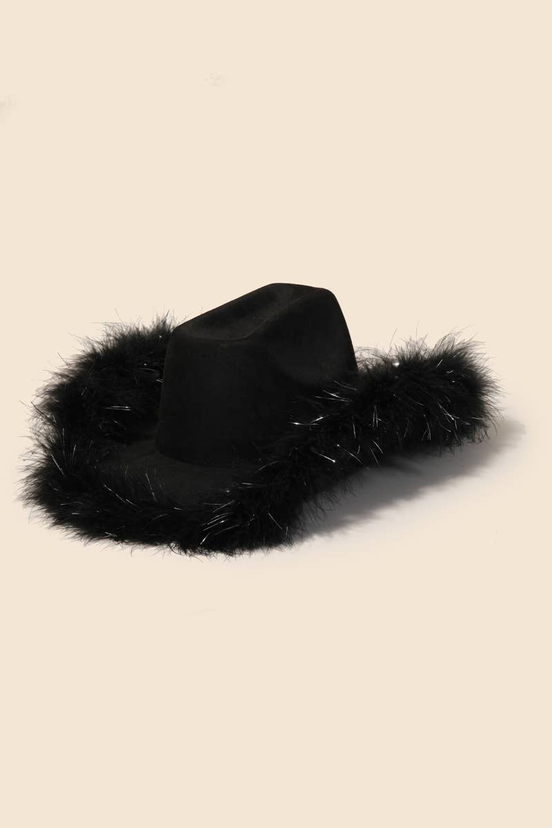 This cowboy hat adds a modern faux feather trim style. Explore a refined sense of style with this cowboy hat, seamlessly elevating the chic factor of your look.
