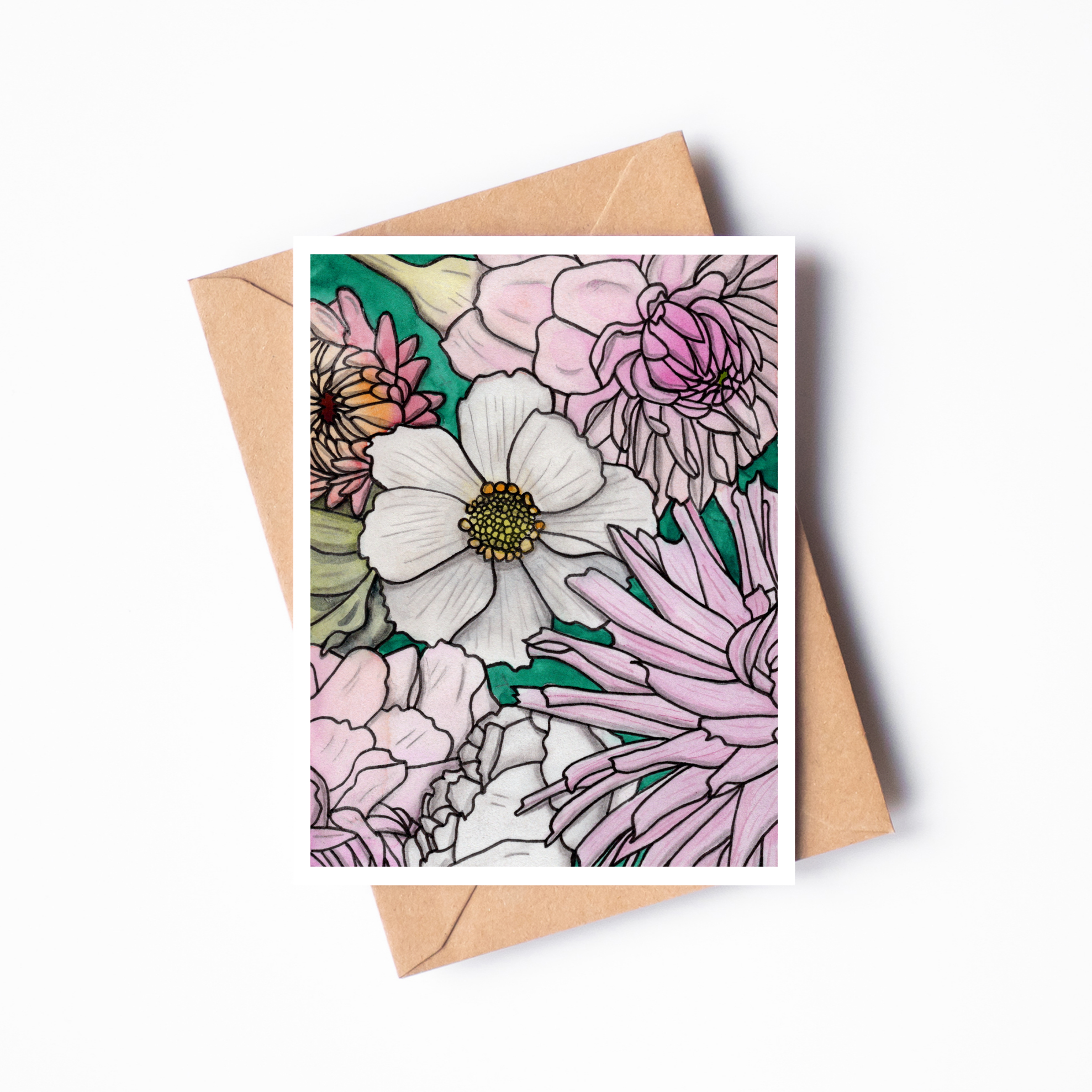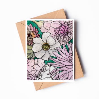 Note cards of our best selling "Drama Queen" Dahlia flowers print are now available. Professionally printed on high quality, 110 lb. smooth matte finish card stock. Matching envelope included. Measures 4.5"x6.25" (A6 size). Blank inside. Is there another print in our collection you'd like to see offered as a note card? Just ask!