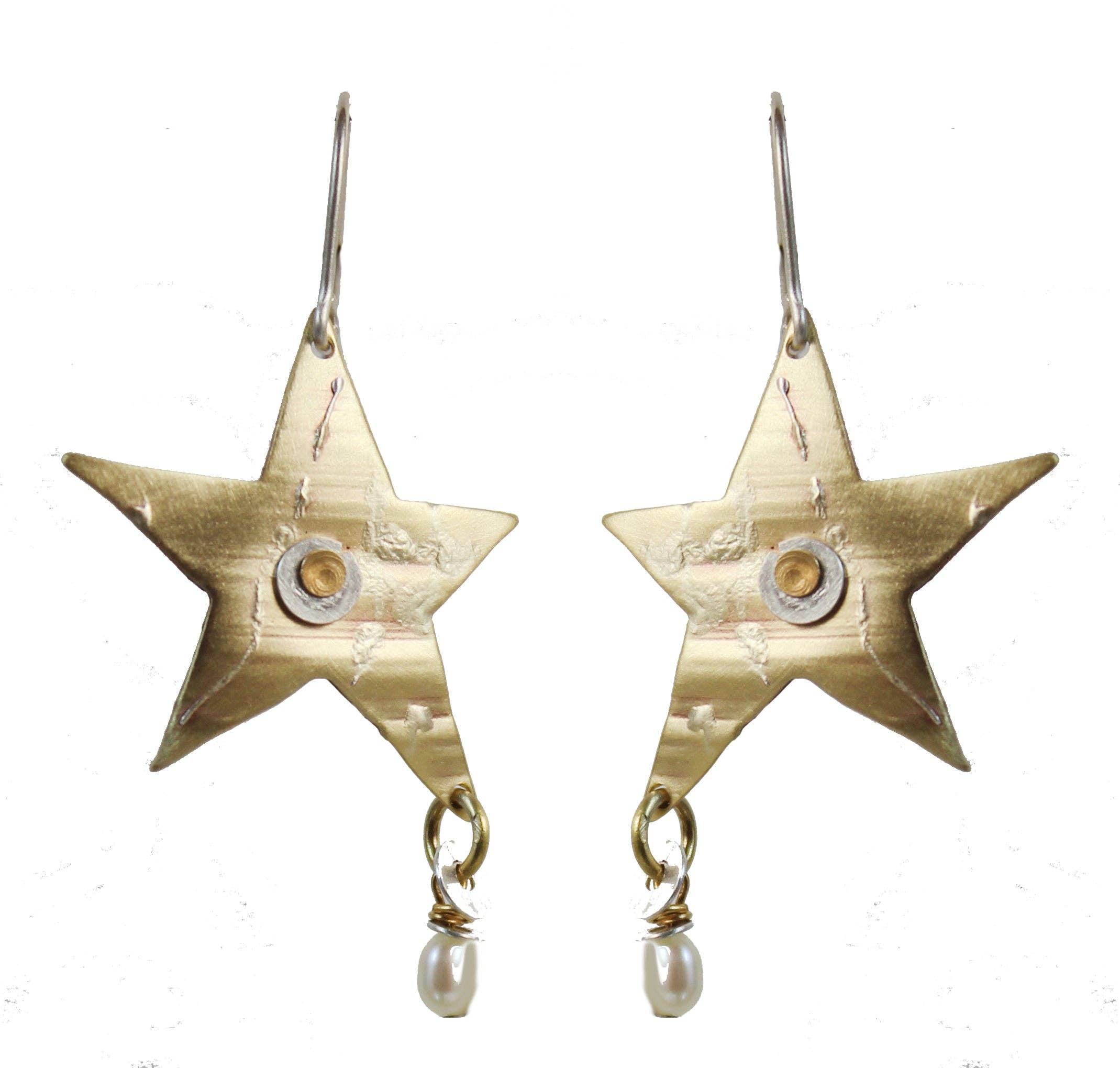 Brass, some with Copper, and Polymer Clay, Sterling,s and all made by hand in Sarasota. Gold plated brass chain 16"-18"Â has 2" extension chain. 1 3/8" x 5/8" pendant. Designed by Linda Whitney