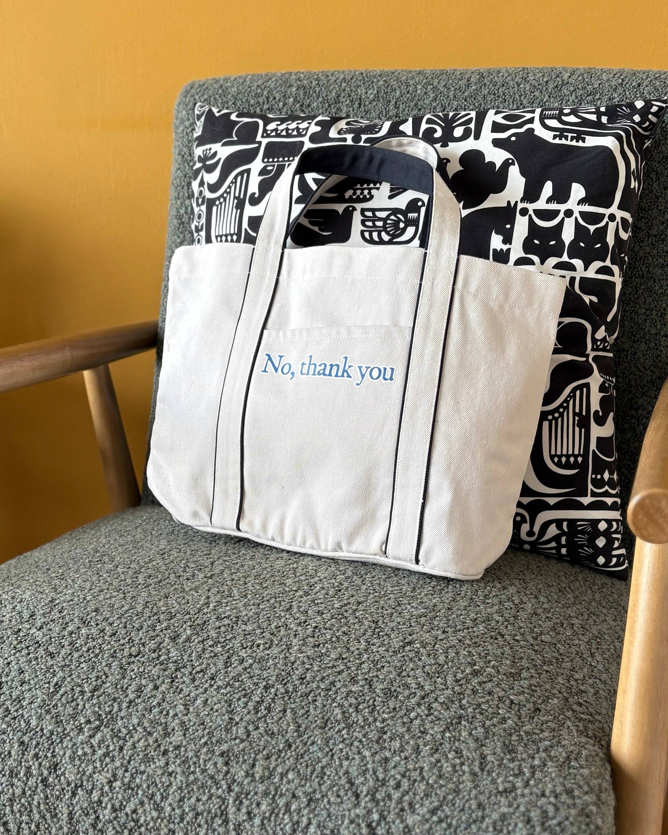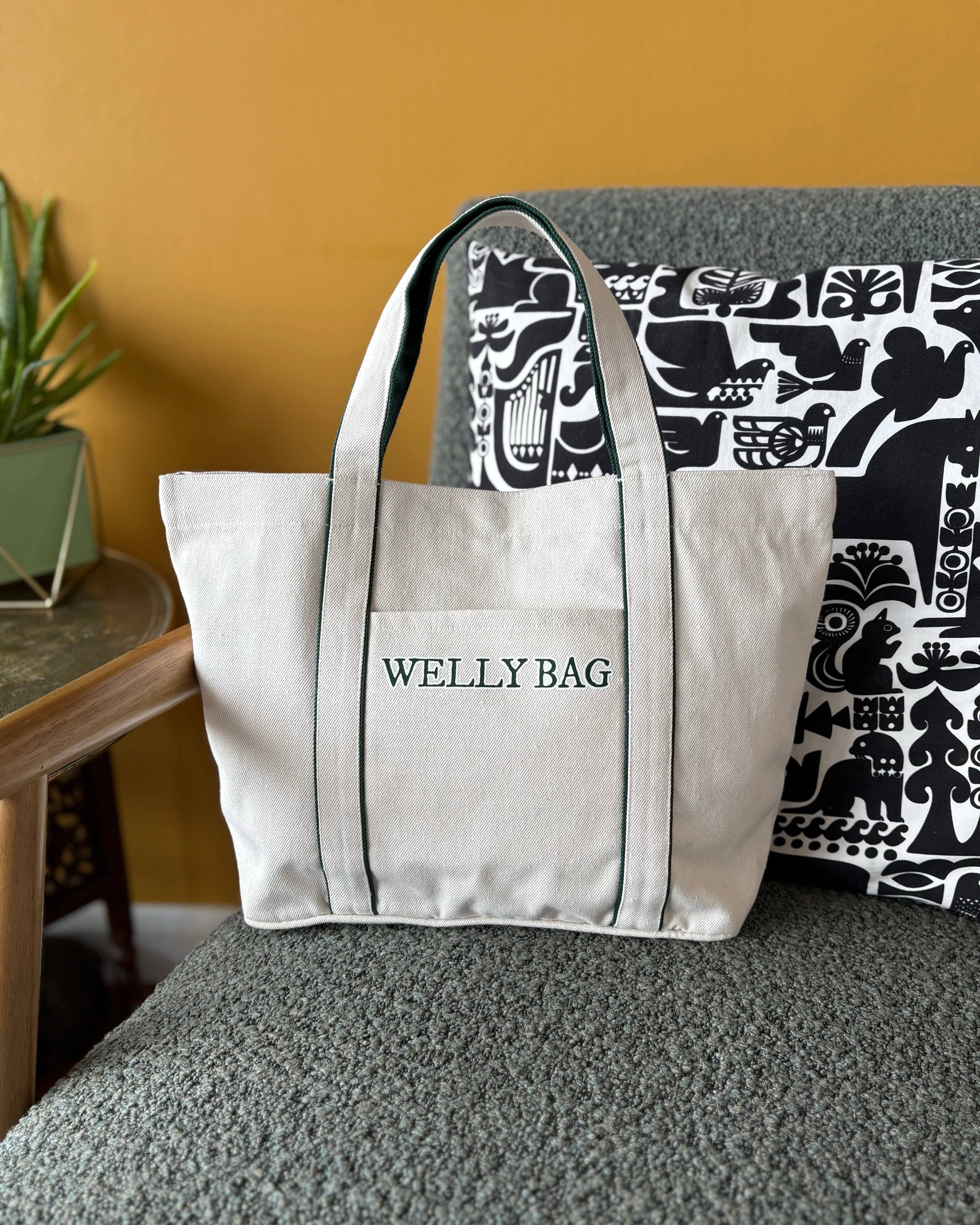 As the leaves turn and the air sharpens, our new Heatherfell Tote bags step up as your new favourite bag. Made to carry scarves, woolly mittens, and fresh veggies and wine from the market, it’s as practical as it is enduring; built to weather autumn drizzle and wintery chill. Made from a premium heavyweight fabric that blends 70% pre-consumer recycled cotton and 30% post-consumer recycled polyester, and featuring 100% GRS-certified recycled cotton (certified by Control Union CU811033), the Heatherfell Tote is sustainable and hard wearing. Available with either Oxford Blue, Hunter Green & Caramel handles. A magnetic snap closure secures the main section of the bag, while a external slip pocket offers space for quick-access essentials like gloves or a purse. The piped base panel adds structure, and the fabric shoulder handles with contrasting trim ensure comfort and style, whether you’re braving the farmers market or taking a woodland stroll. Choose from two sizes: Mini Heatherfell Tote - Perfect for day-to-day essentials: gloves, a favourite book, and a thermos of spiced tea. Dimensions: 30 × 27 × 12 cm. Front external slip pocket: 13 × 18 cm Large Heatherfell Tote - Room for larger items: blankets, extra layers, or a haul of seasonal produce. Choose this size for carrying a laptop. Dimensions: 41 × 34 × 15 cm. Front external slip pocket: 15 × 23 cm Product Features: * Main fabric: 70% pre-consumer recycled cotton / 30% post-consumer recycled polyester * Contains 100% GRS-certified recycled cotton, certified by Control Union CU811033 * Premium heavyweight canvas * Magnetic snap closure on main compartment * Front slip pocket * Piped base panel for structure and shape retention * Self-fabric carry handles with contrast detailing * Available in Oxford Blue, Hunter Green & Caramel Care Instructions: Spot clean with cool water and a soft cloth. Avoid bleach and tumble drying. For a deeper clean, gently hand wash or your machine wash on a calmer cycle and reshape while damp. Like your favourite wool jumper, it softens with each wash. Colours may vary due to screen and monitor settings.