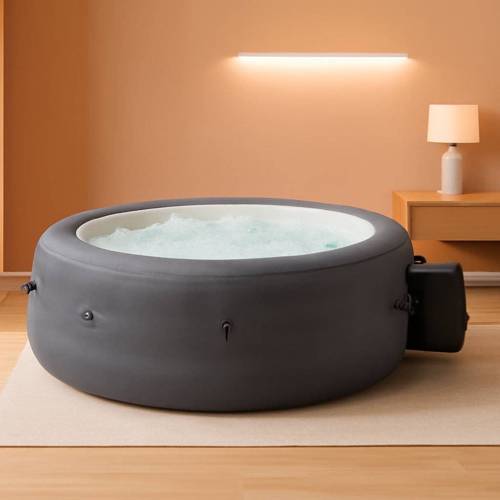 Turn your backyard into a private spa with room for up to 6 and a soothing power of 140 jets. The SaluSpa Hawaii AirJet hot tub delivers a bubbling massage, easy setup, and energy-saving design for reliable relaxation right at home. Designed for outdoor use, this square inflatable hot tub fits patios, decks, or yards with a compact footprint, while still accommodating 4 to 6 people for shared comfort. It heats up to 104°F for a warm, relaxing soak after a long day. * Spacious seating for 4–6 people in a generous square footprint (71 x 71 x 28 inches). * 140 air jets deliver a continuous, soothing massage across the whole tub. * Energysense energy-saving cover is 40% more efficient, helping keep heat in between soaks. * Energy efficiency compliance meets APSP-14 and Title 20 requirements for sale in multiple states. * Durable construction uses DuraPlus 3-layer material—33% more puncture resistant and 56% more stretch resistant than PVC. * Freeze Shield prevents inner components from freezing during colder temperatures. * All-in-one setup includes a pump that inflates, heats, runs filtration, and powers the massage system; includes spa cover, spa pump, chemical floater, 2 filter cartridges (VI), 1 repair patch, and a 6-foot cord. * Practical specifications—water capacity 222 gallons (80% full); heat range 40–104°F; water flow 320 GPH; filled weight 1,938 lbs; 110/120-volt 3-prong plug. * Outdoor-ready versatility designed for easy use on patios, decks, or lawns. Imagine unwinding beneath the shade of your favorite trees or under a starlit sky, feeling tension melt away as warm bubbles and soft lighting create a spa-like escape. The SaluSpa Hawaii AirJet hot tub combines practical durability with luxurious relaxation—a reliable, private retreat you can enjoy anytime.