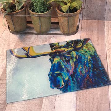 "Tranquil Elk" 3mm Heat Tolerant Glass Cutting Board 10" x 8