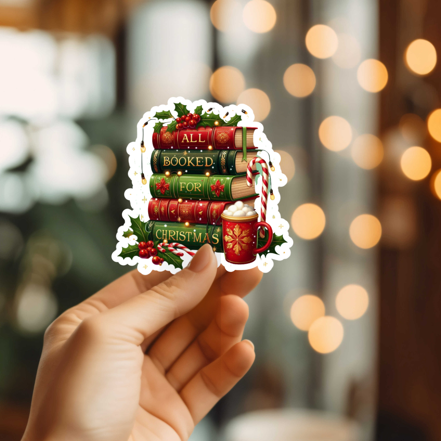 Introducing our introducing our CHRISTMAS Shop Around the Corner You've Got Mail inspired sticker! A delightful piece of fall art that will brighten up water bottles, laptops, planners, and more! (Check out the matching bookmark in another listing!) Key Features: High-Quality Vinyl: Crafted from premium thick vinyl material, this sticker is not only visually stunning but also durable, removable, and waterproof. Captivating Design: Digitally illustrated in an holiday book shop theme. The quote reads: "It will all shake out. Meanwhile I'm putting up more twinkle lights." Perfect Gift Item: Unique and thoughtful gift accessory item, perfect for book stores and boutiques. Dimensions: approx 3 x 2.75 inches/sticker is large.