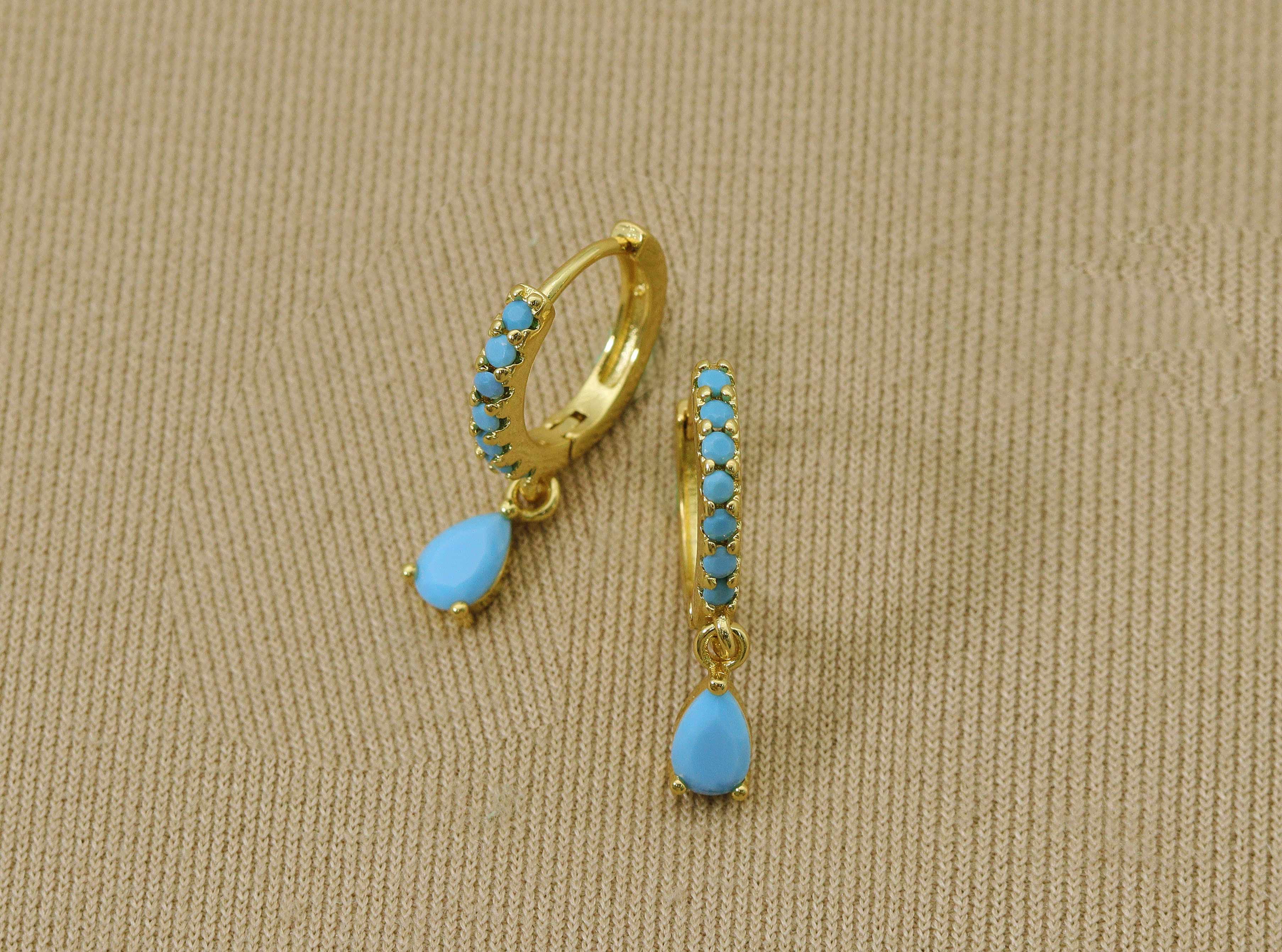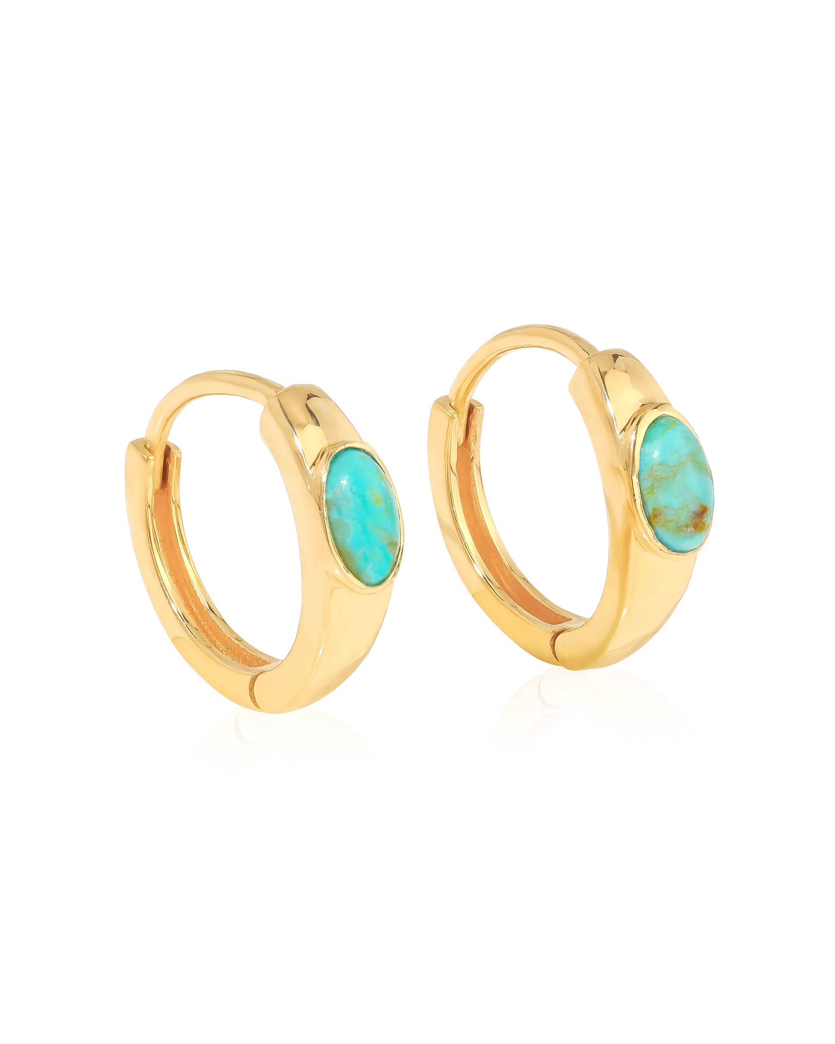 Gold-filled hoops wrapped with turquoise Hoop size: 34mm Handcrafted at Mabel's San Francisco Atelier.