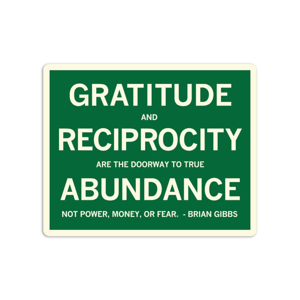 Gratitude - reciprocity - abundance. Inspired by Brian Gibbs himself. A Portion of All RAYGUN Sales Raise Money For Organizations That We Support. Sienna Brown Screen Print on a Cream T-shirt (100% Combed Ringspun Cotton). Cut & sewn sweatshop free. Designed and Printed by Union Labor at RAYGUN.