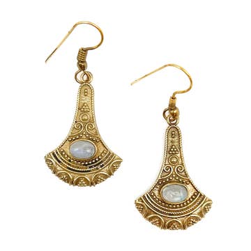 These glowing sun medallion earrings are hand enameled in a pearly golden beige and jeweled with brilliant yellow and iridescent crystals. Pair with our matching pendant for a sparkling set. Made in the USA with antiqued brass lead/nickel free white metal castings. Also available with a coordinating clip or post. Earring wires/clips made of nickel/lead free antiqued brass. Posts made of surgical steel. Approximate Measurements from top of earring wire: 1 3/8” L x 3/4" W Style# ER4904SUN Coordinating Styles: NK4904SUN Sun, Inspirational Symbols, Celestial, Summer Jewelry, Gift Ideas, Artisan Jewelry, Handmade, Graduation