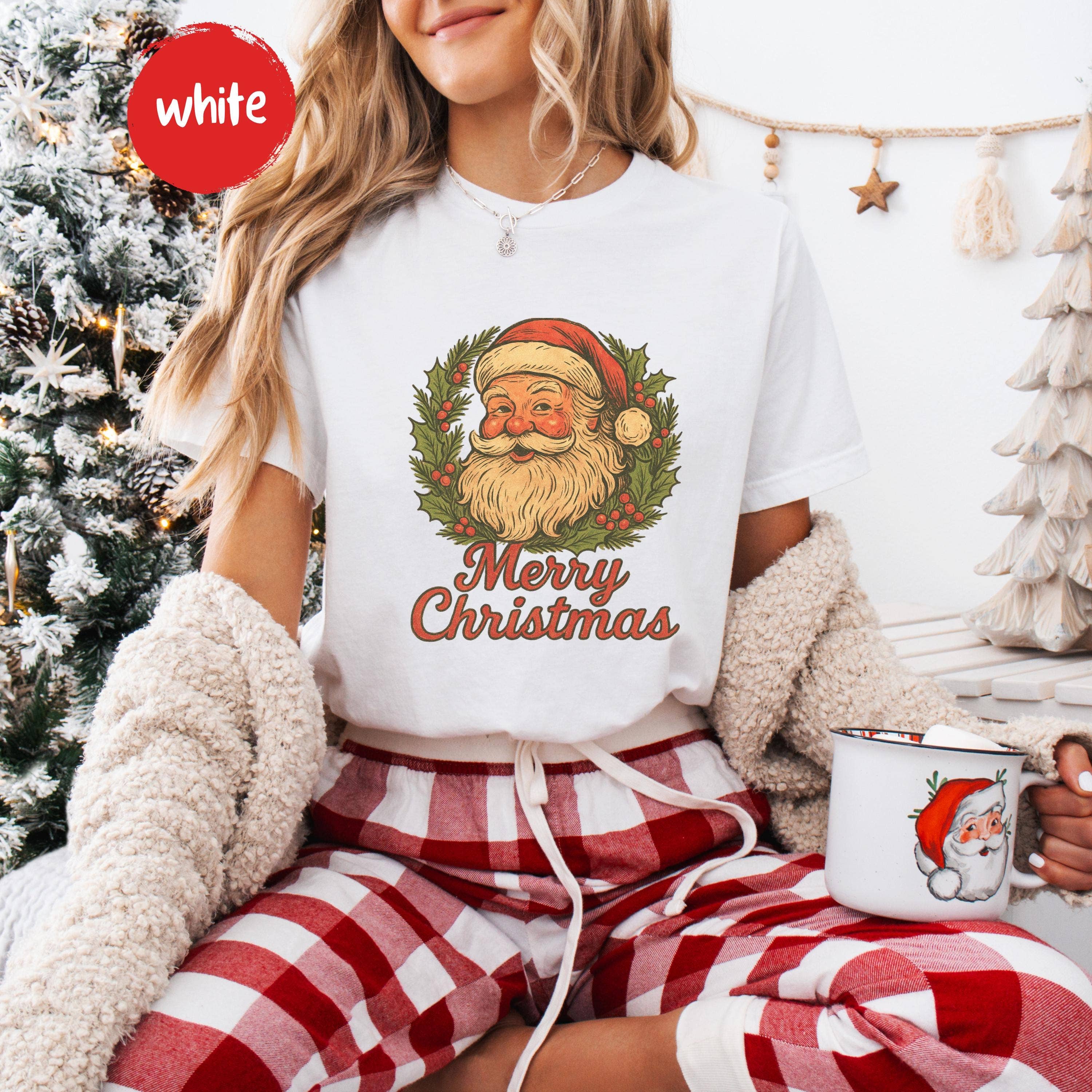 Cute vintage style artwork of Santa wearing his MAJA hat. Printed on cotton long sleeve tee. Unisex size and super soft. Washes and wears well. When you purchase from me, you support a small, woman owned business. I buy my blanks from an American company and print all my designs in-house. When you receive your order you will love the quality and soft feel of the DTG printing. I use only eco-friendly water based inks and the best quality cotton/poly tee shirts. No plastic feeling vinyl that will peel or thick scratchy screen printing.
