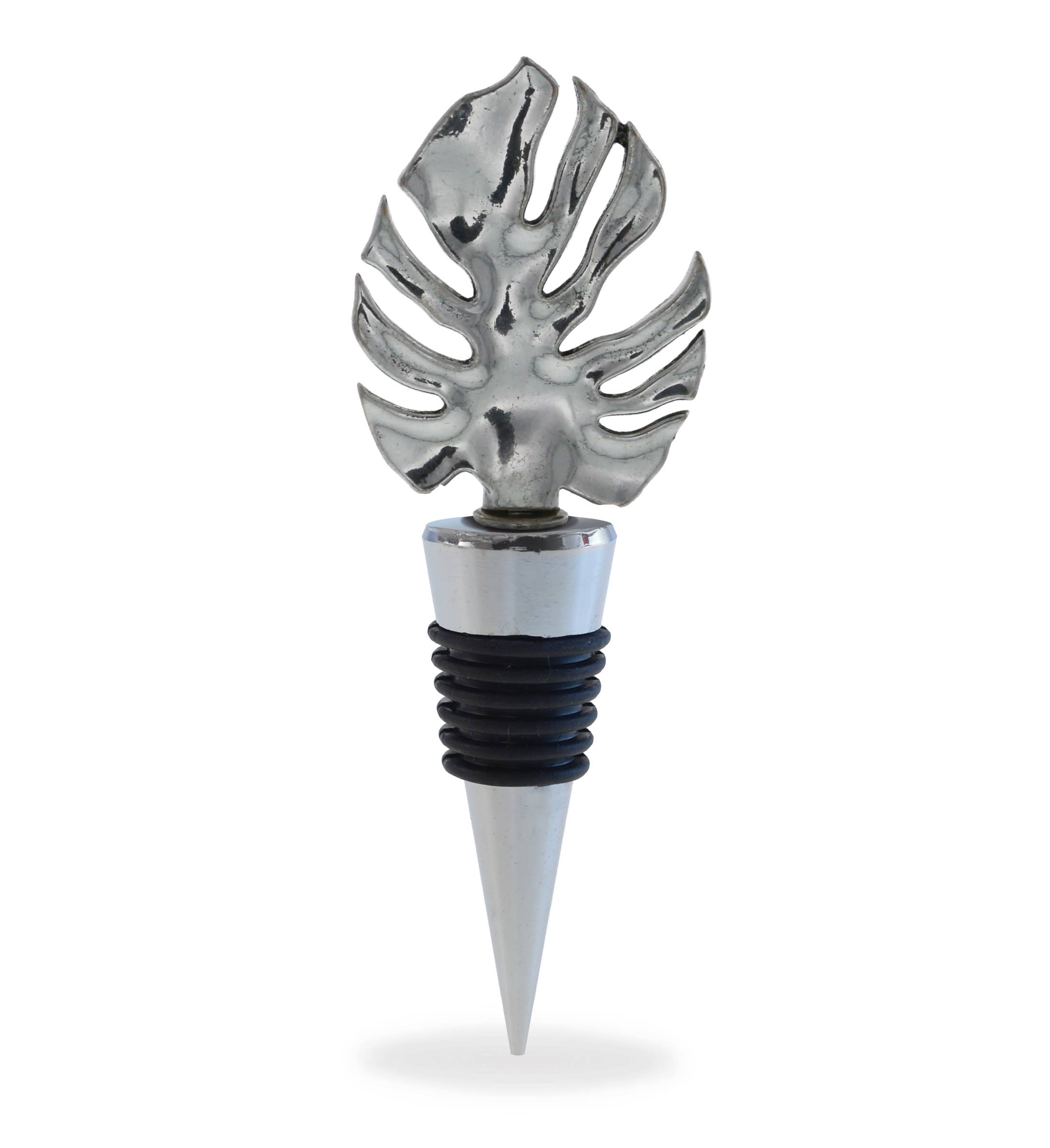 Keep the full aroma in every bottle with this elegant and beautifully detailled crafted bottle stopper with Magnolia motif Our Arthur Court pure aluminum bottle stoppers are finished with a rubber gasket to ensure the best storage for your carefully curated collection of spirits. Designed to work well with most bottles, the uniqueness of each stopper allows you to express your style as bar keep and entertainer. Size: 5"H x 3"L x 3"W Care: Hand cleaning with warm water and a soft cloth