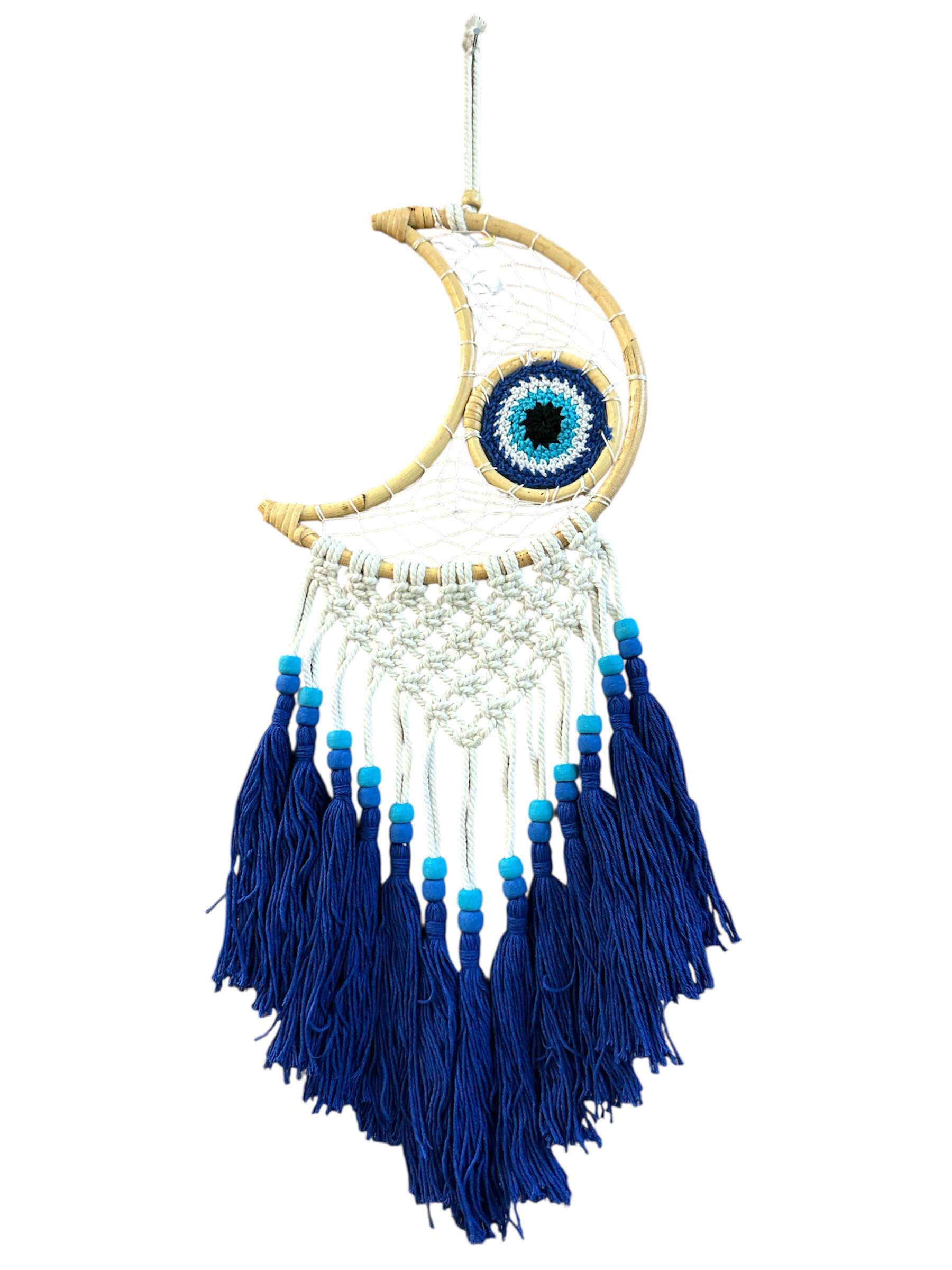 Combine the protective powers of the dreamcatcher and the evil eye with our woven hanging web. ⚠️CA Warning: Can expose you to Lead and lead compounds, a carcinogen and reproductive toxicant. See www.P65Warnings.ca.gov.