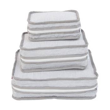 Effortlessly organize and maximize space in your suitcase with Bag-all Basic Compression Packing Cubes. Made of eco-nylon, these lightweight and durable cubes compress your items to save space and make unpacking a breeze. The 3-pack comes in small, medium, and large sizes to separate clothes, toiletries, and other essentials for efficient packing. Perfect for home or travel. Happy organizing!
