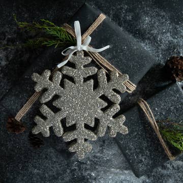 Made with clear iridescent glass this snowflake will glisten displayed in a window or on a tree. Use as a Christmas ornament or display as a window sun catcher with the suction cup that is included. Bring sparkling color inside during cold winter days with this festive glass snowflake. Featuring a center star made of clear hammered iridescent glass, decorate your Christmas tree with this delicate snowflake and afterwards display in your window with the suction cup that is included.