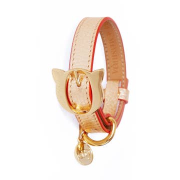 The Unbe-leaf-able cat collar features beautiful gold leaves on black. Your kitty's style will turn a new leaf with this beautiful collar. All collars feature breakaway buckles for cat safety. Not to be used with a leash. Sizing: Kitten fits necks 5-8" Standard fits necks 7-10" Lion fits necks 9-12" All of our collars are handcrafted with love in Portland, Oregon. All collars are made of high quality webbing for durability, covered with hand selected ribbon or fabric. We double stitch stress points; making our collars both sturdy and gorgeous. Note that each collar is custom made and fabric pattern may vary.