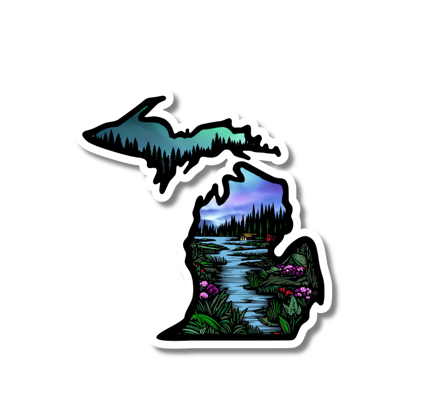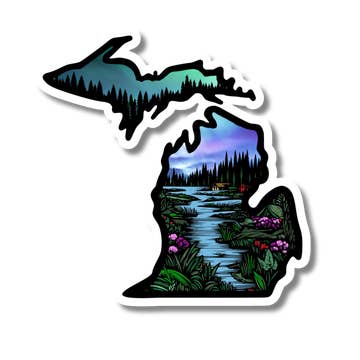 Show your love for Michigan with this beautiful decal featuring one of my original watercolor paintings. . Perfect for your car, RV, water bottle, laptop, anywhere you want to show a little Michigan state pride! Packaged Loose. Size - 3" Weather, dishwasher, fade & scratch resistant. 100% designed, printed, and assembled in the USA!
