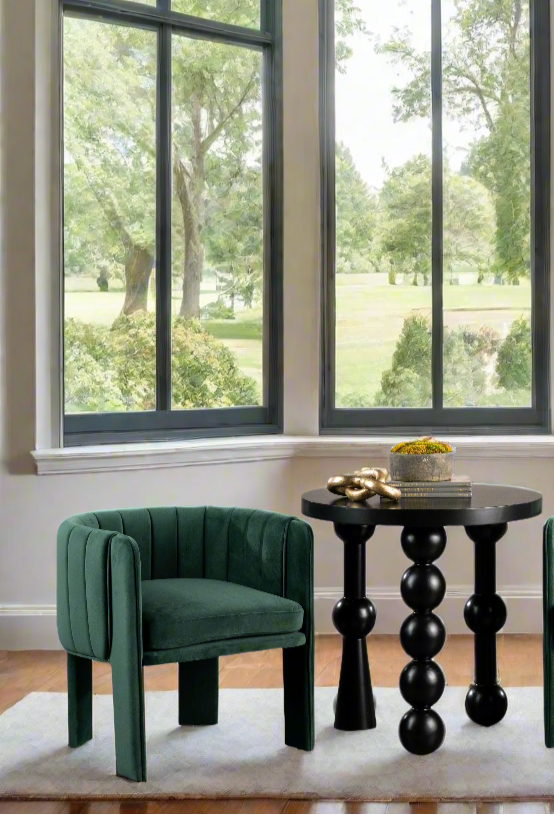 Introduce elevated glamour to your dining or entertaining space with the Velvet Curved Back Dining Chair. Designed with a sculptural curved silhouette and luxurious velvet upholstery, this chair brings both comfort and high style to the table. Sleek ferrules at the base of each leg add a sophisticated touch and are available in multiple finish options for flexible styling. Whether you’re hosting dinner parties or looking to upgrade everyday dining, the Kit Chair adds bold presence and refined comfort. Its versatile design also makes it an elegant accent chair for living rooms, bedrooms, or stylish home offices 🪑 Curved Back Silhouette – Sculptural form offers ergonomic support and modern appeal 🧵 Plush Velvet Upholstery – Luxurious texture elevates dining and lounge experiences 🦾 Ferrule Accents – Sophisticated leg detailing, available in multiple finish options 🏠 Versatile Design – Perfect for dining spaces, living rooms, bedrooms, or offices 📏 Overall Dimensions: 21" W x 22" D x 32.5" H 📐 Seat Dimensions: 18.25" W x 17" D | Seat Height: 18.5" | Back Height: 13.5" .