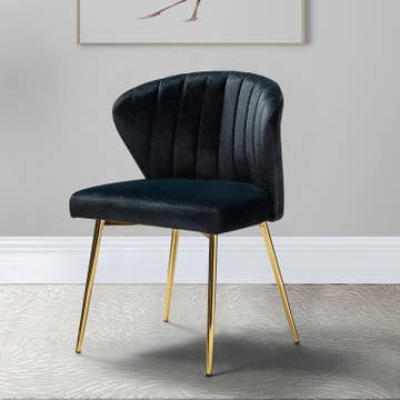 This black velvet chair with gold is stunning. Great quality and very comfortable to sit in. I've already ordered more! Highly recommend.