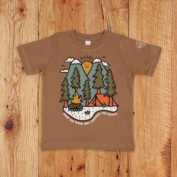 Our take a hike designs on a 50% cotton 50% polyester next level youth shirt.