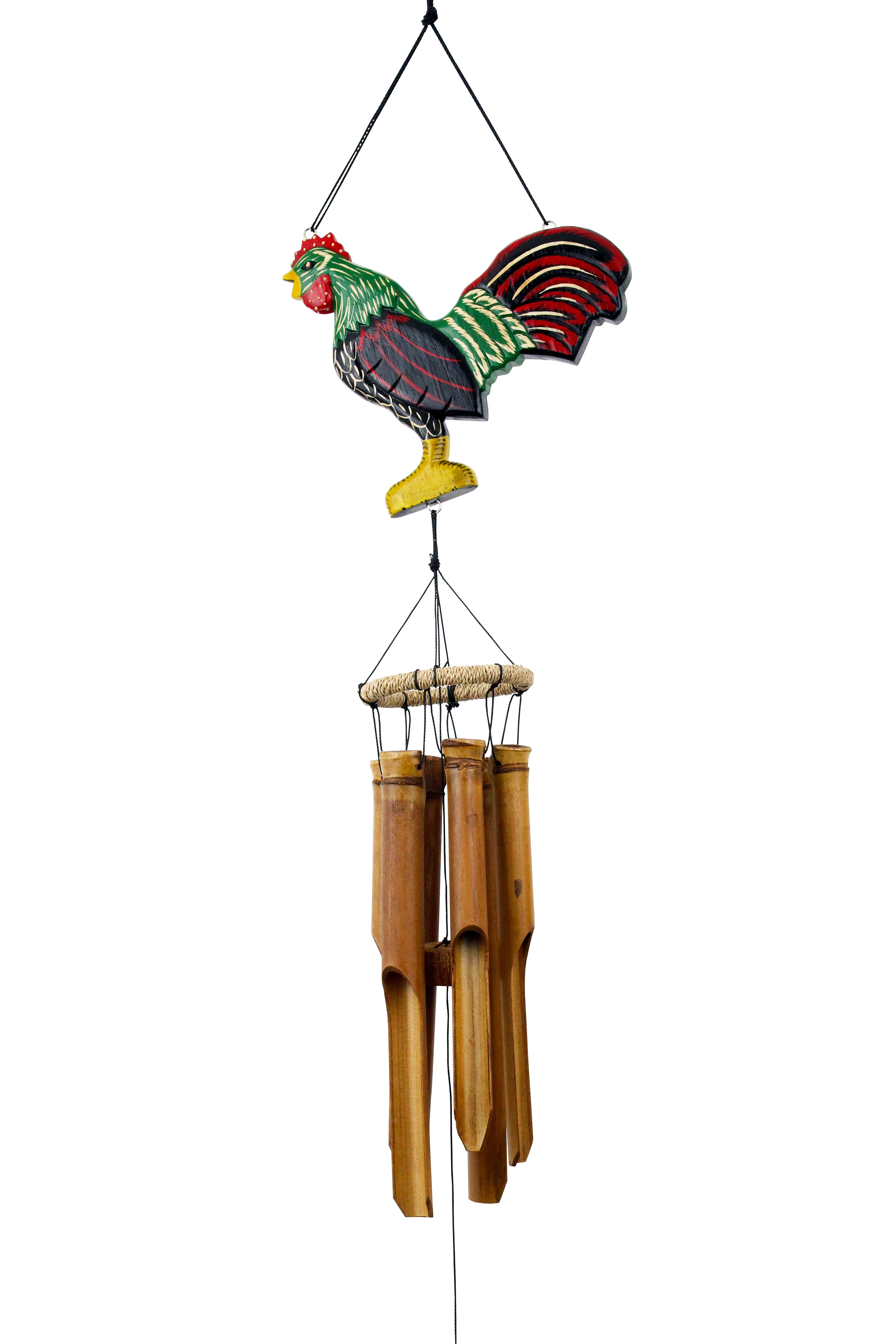 Lucky Rooster Silhouette Bamboo Wind Chime