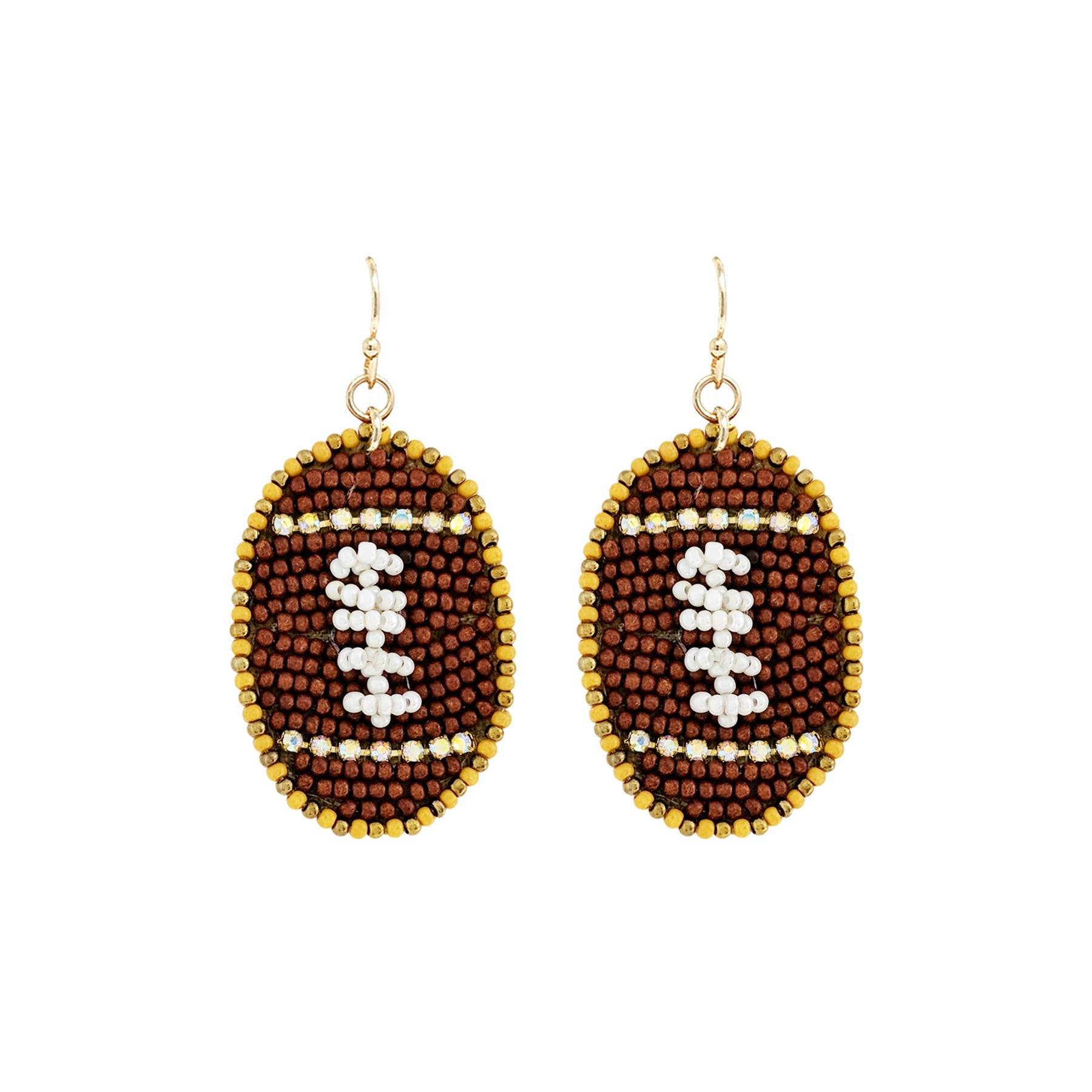 Experience the ultimate game day look with our 1.5 inch football-shaped enamel hook earrings. The perfect accessory for any football fan, these earrings add a fun and unique touch to any outfit. Made with high-quality materials, these earrings are a great way to show off your team spirit. *Design in New York City *We only sell it in 3 pack units. (3pack, 6pack, 9pack...) LENGTH : 1.5 INCH COLOR : SHINY GOLD HOOK EARRINGS GAME DAY FOOTBALL SPORT ENAMEL