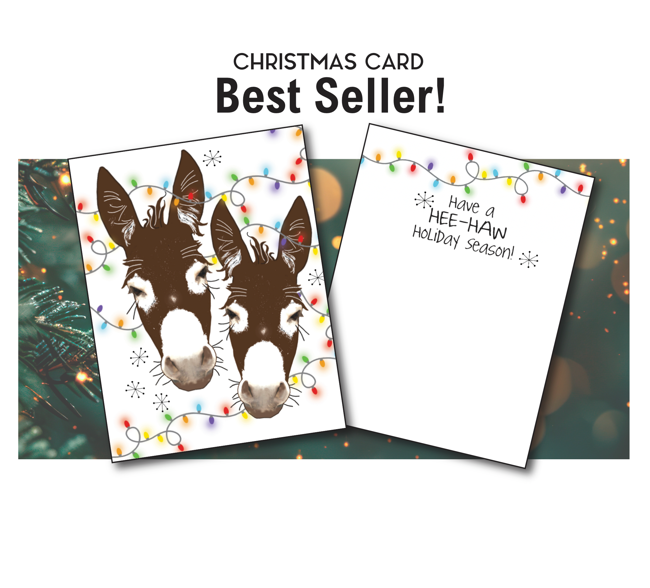 BEST SELLING, Inexpensive and affordable, artistic horse and equestrian Christmas card includes envelope and sleeved in plastic to prevent wear. Individual Cards. Crafted from quality paper with a high-gloss UV coating and printed in the USA. 6" x 4.5" inches with woven envelope opens to 9" x 6". Retailer writes, "Inexpensive, customers buy more than 1." Easy add on. Display available, see below. Artist and creator, no AI (no artificial intelligence). Everything starts in my head, then to a drawing board and then to the computer to set up for the printer. These horse Christmas greeting cards are: • Printed on high-quality card stock • Outside: High-gloss UV coating • 4.5 x 6 opens to 9 x 6 • Inside uncoated for writing • Includes a matte white envelope • Inexpensive - customers buy more • Sleeved in plastic / UPC bar coded • USA Made American brand • Ships from US, no import duties • No tariffs • No AI (no artificial intelligence) ~~ Order 60+ mixed units and a FREE cardboard display automatically ships ~~ • 52% margin • FREE Shipping ~ (we have never charged shipping in 35 years of biz) :-D • LOW Mins • 35 Years serving retailers • FREE Sample Pack "We sold your Christmas cards like crazy!!! None left and we bought a lot!" Rosemary, Equus NOW "5 stars across the board! They shipped quickly and the order was very well packaged."-Ashley, Northwest Tack *Each order gets a FREE sample pack to try. Google doc of UPCs, ret: $6-8