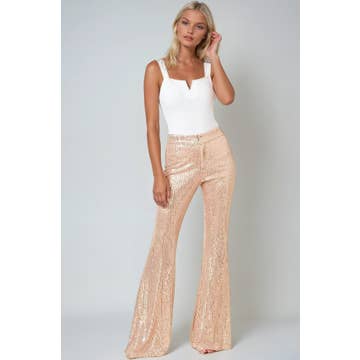 Fabric: (Shell) 95% Polyester, 5% Spandex (Lining) 100% Polyester Fabrication: Mesh sequin Rise: High-rise Cut: Wide leg Fit: Regular Details: Loose cut Lined Elastic waistband Pockets Pull on Stretch Garments shipped with a retail referenced as Pre-Ticket Retail $78.00