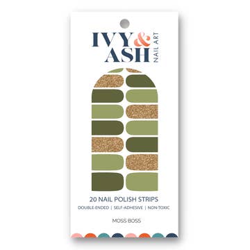The emerald green shade paired with the sheer pink tone is modern and eclectic. High gloss premium real gel nail strips Non-toxic, cruelty-free, and vegan Easy application, no drying time Each pack includes 20 nail strips, a mini nail file