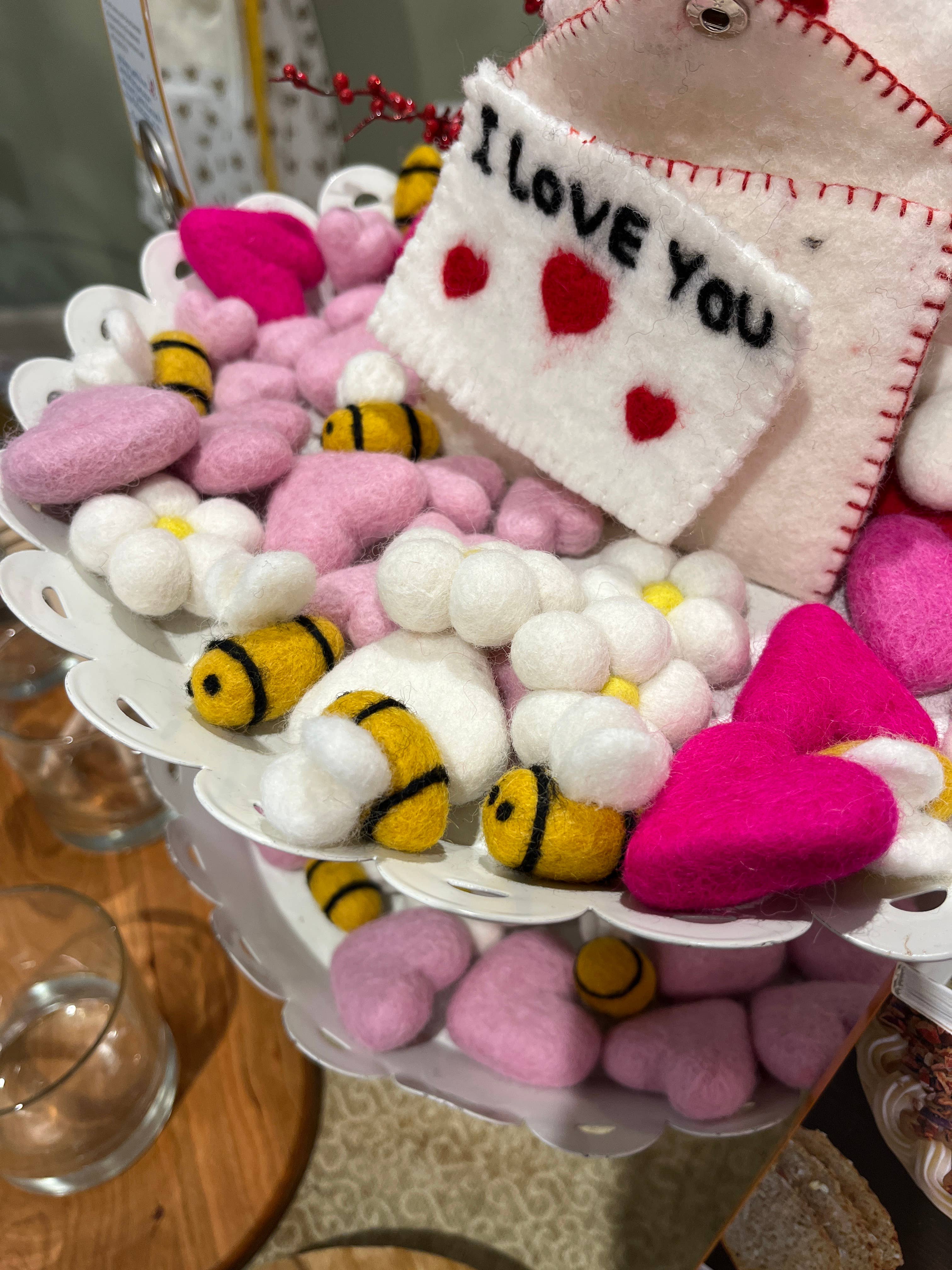 Each flower is hand crafted by fair trade artisans using both the wet felted and needle felted methods. These adorable flowers are perfect for sensory play, learning, decor and garlands! Due to the handmade nature of these materials each product may differ slightly from pictures. Material: 100% Wool Felt Included: 1 individual flower Size: 4cm
