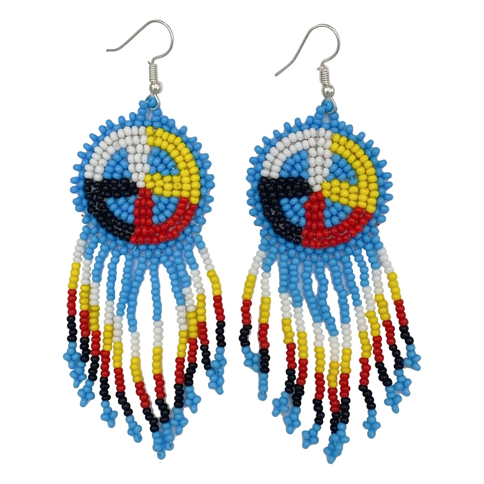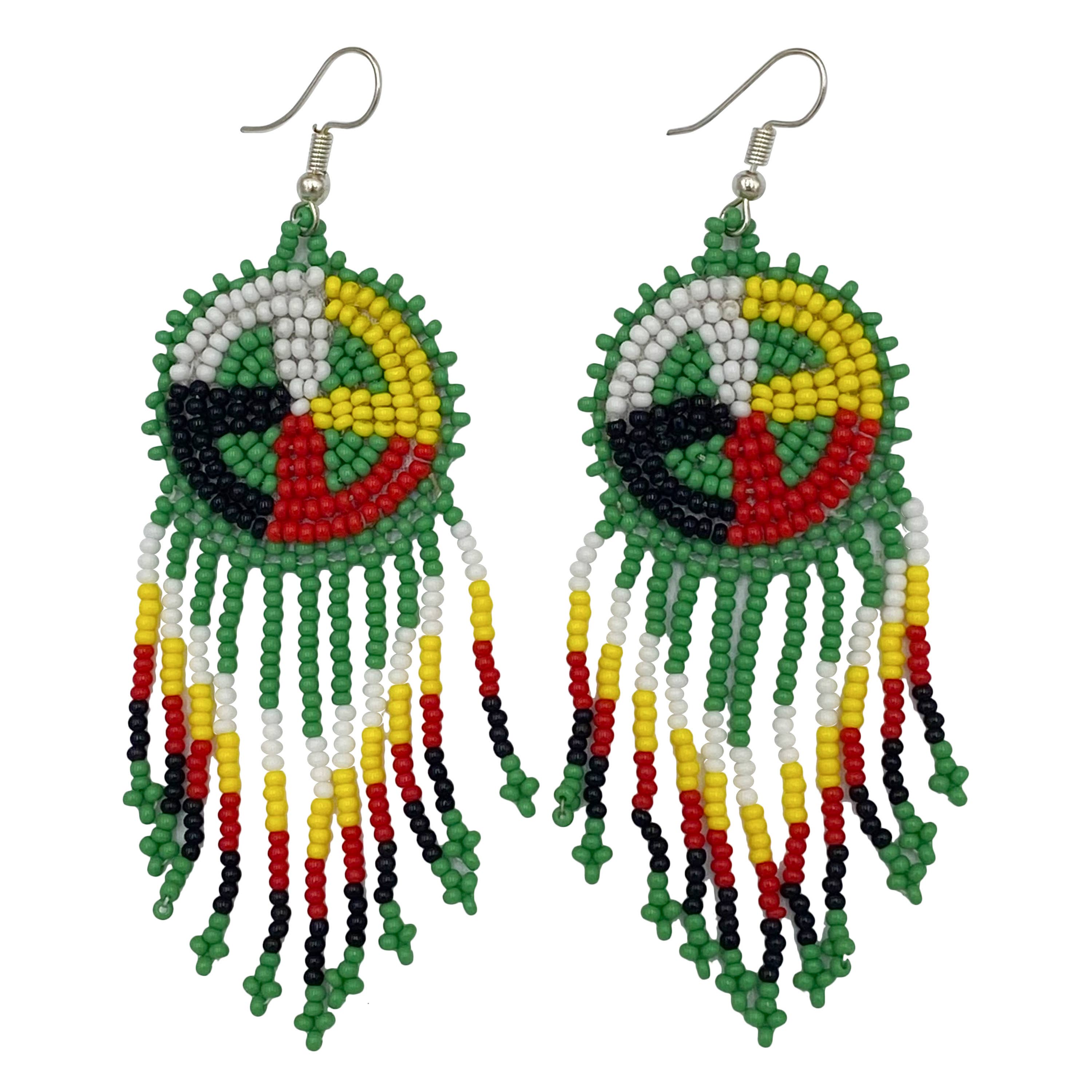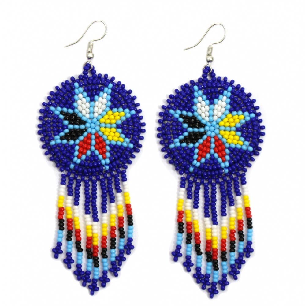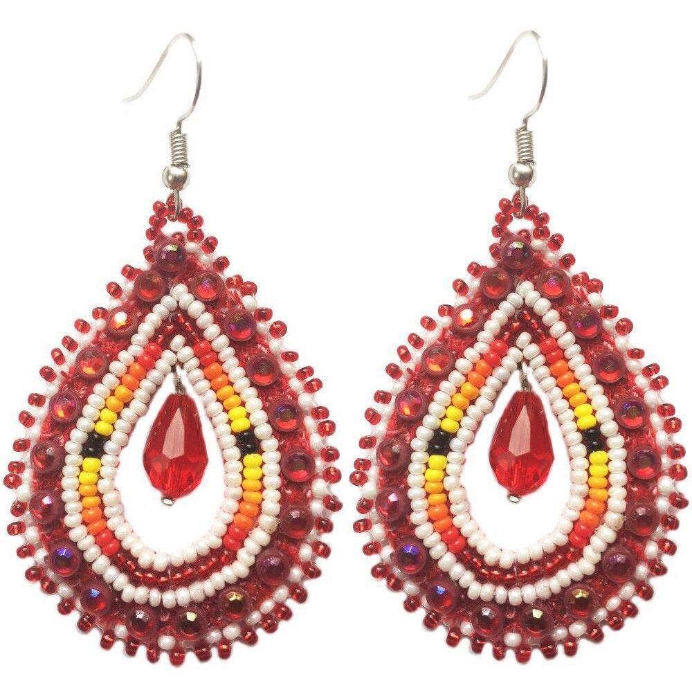 Wholesale Handmade Beaded Red 4 Directions Color Round Fringe Hook Earrings