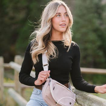 Our signature 3 Sister Studs are now officially trademarked! We're in the process of transitioning the Jolie to feature these iconic studs—just like the rest of our bags. During this transition, your Jolie may arrive with or without the studs. Either way, it’s the same style you love! Our Jolie Puffer Crossbody Bum Bag is an updated version of the original fanny pack that can be worn in multiple ways. This quilted belt bag can be worn as a belt bag/fanny pack, crossbody bag, or shoulder bag. Featuring a unique half moon shape in a quilted puffer poly fabric. Gold hardware with a fun ribbon accent on the zipper finish off this popular design. This is one of our highest sell through designs and a must have for your boutique! We are obsessed with this style, it holds so much and the front zipper makes for really easy access to all of your necessities! * Adjustable waist / shoulder strap up to 45 inches. Starts at 27 inches. * Exterior zipper pocket for easy access to your credit cards and ID and phone Black and white striped lining. * Bag measures 12" x 8" at the longest points. * Main material: Quilted Puffer Polyester; Other: Sponge and poly/cotton liner * Spot Clean * 16 Colors (Olive, Black, Sand, Blush, Light Gray, Navy, Emerald, Camo, Fuchsia, Crimson Red, Carolina Blue, Smoke Gray, Leopard, Pink Floral, Watercolor Orange Floral, and Light Denim!) * PS, the navy and emerald Jolie come with 2 ribbons (one inside the interior zipper of the bag!) Our Jolie is one of the Best Selling Crossbody Belt Bags in our 3 Sisters Collection! This collection is inspired by the unbreakable bond shared between the owner/founder of Pretty Simple and her 2 sisters. These bags are marked with three signature studs and will complete outfits, catch eyes, and remind wearers of the incredible connection to their own sisters, whether through blood or by choice. You can see it in our inspiration and mission.