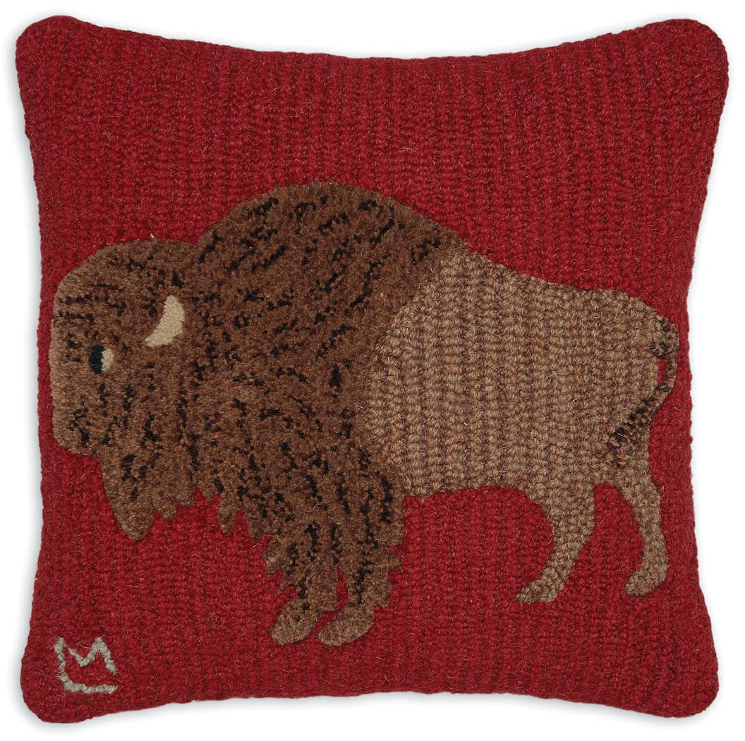 14" x 14" hand hooked pillow, made with 100% natural wool. Zippered velveteen backing with poly-fill pillow insert. Designed in Vermont by Laura Megroz. Handcrafted in India. Member of the Fair Labor Association.Care Instructions-- Do not machine wash or dry clean. - All of our hand-hooked wool products can be gently spot cleaned with a clean soft sponge or cloth using a solution of mild soap and warm water. Wipe up spills as soon as they occur. Blot (don’t rub) with damp sponge or cloth. Rinse and blot excess moisture with a clean, soft towel. Air dry. Do not pull stray loops or threads. - It is normal for a stray loop or end to pop up from time to time. Simply snip off with a scissor.