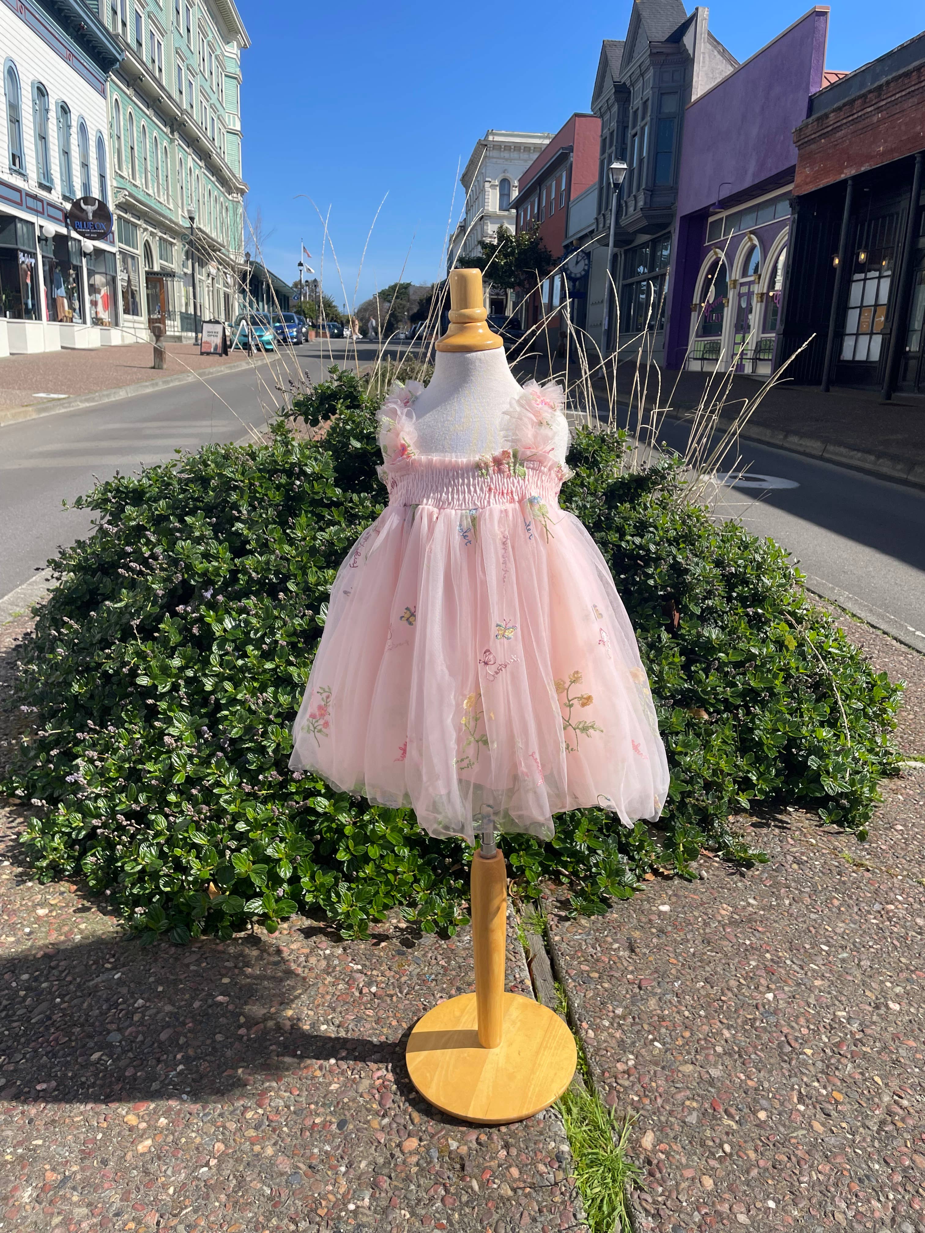 Girls floral embroidery mesh dress with butterfly wings