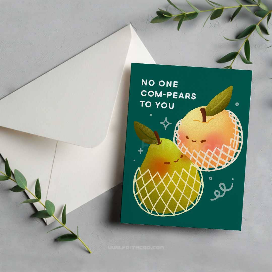 One CALAMANSI greeting card illustrating a half cut calamansi and a calamansi fruit on a light green background with the phrase “I CALAMANSI myself with you” — "I can see myself with you". The calamansi fruit is a citrus hybrid cultivated predominantly in the Philippines. This card is perfect for people ready to commit into a relationship with someone. ✷Details: - Made with 300gsm paper - Inside of card is blank - All cards comes with one white envelope - 4.25"W x 5.5"H size ✷ To reduce waste, some items may be shipped with recycled materials. ✷ Please note that due to differences in computer monitors, there may be slight variation in color.