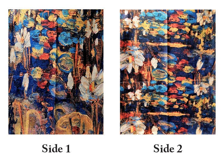 Pablo Picasso Femme Portrait (side 1) and Pablo Picasso Abstract (side 2) Artist Inspired Museum Print Pashmina Scarf with fringe. Double sided with 2 different prints. Stunning, beautiful vibrant colors. Can be worn as scarf or shawl. Size: 28"x79" - 3 pc min. Coordinating matching Glove # GLV-I360 (matches side 1).