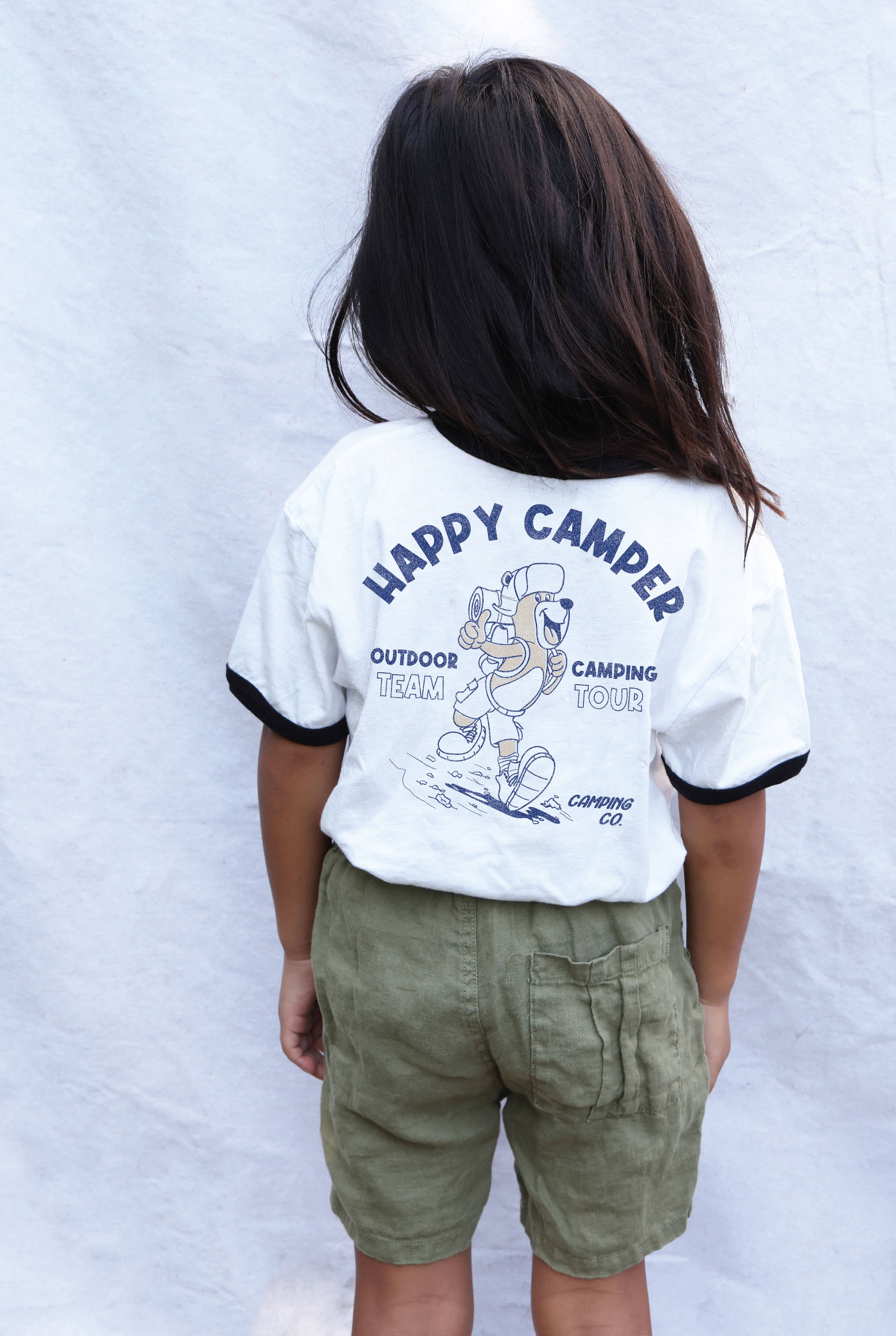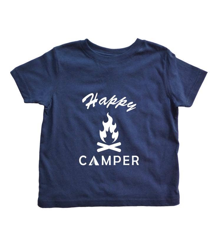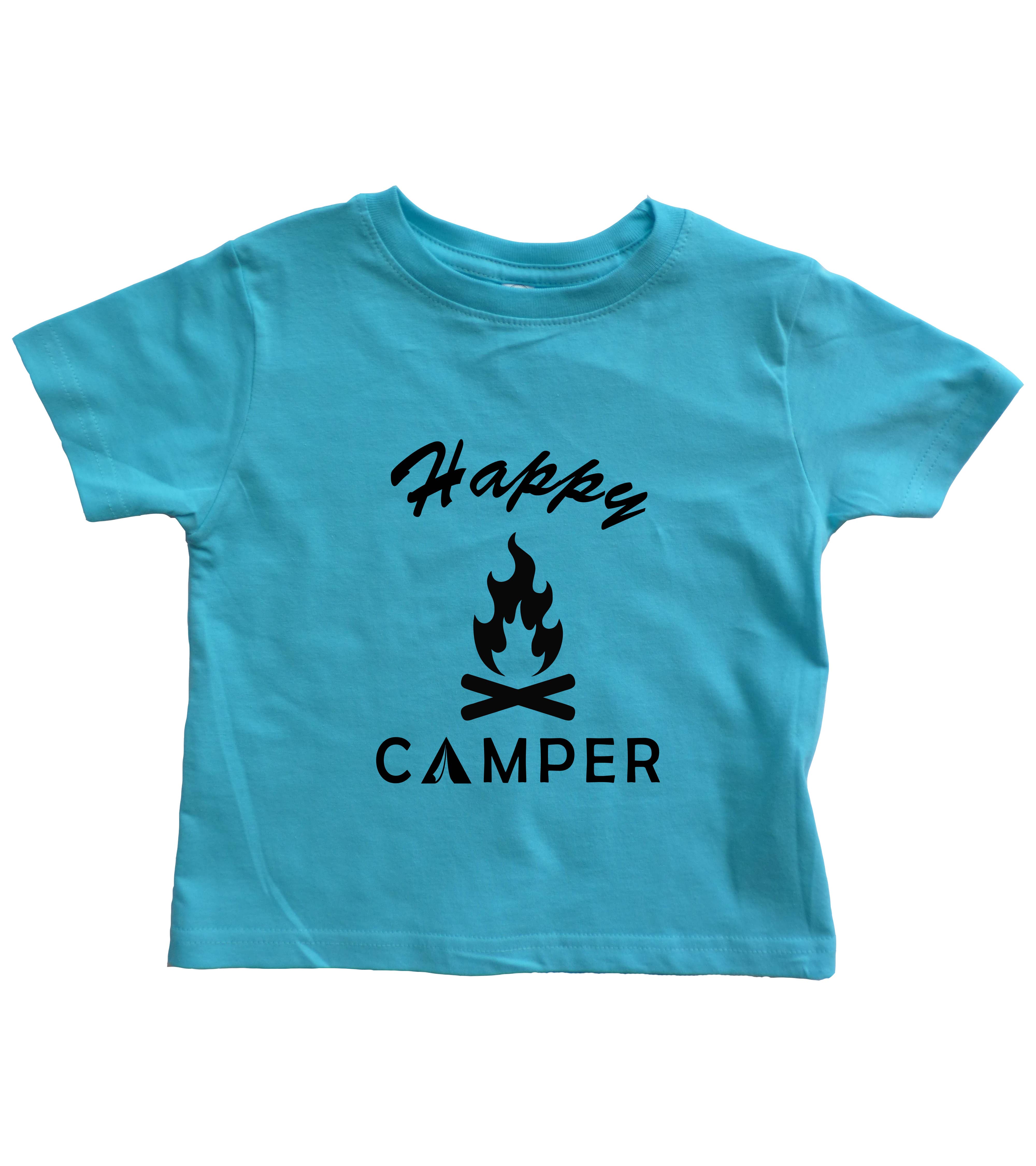 Our happy camper design on a 100% cotton rabbit skins toddler shirt.