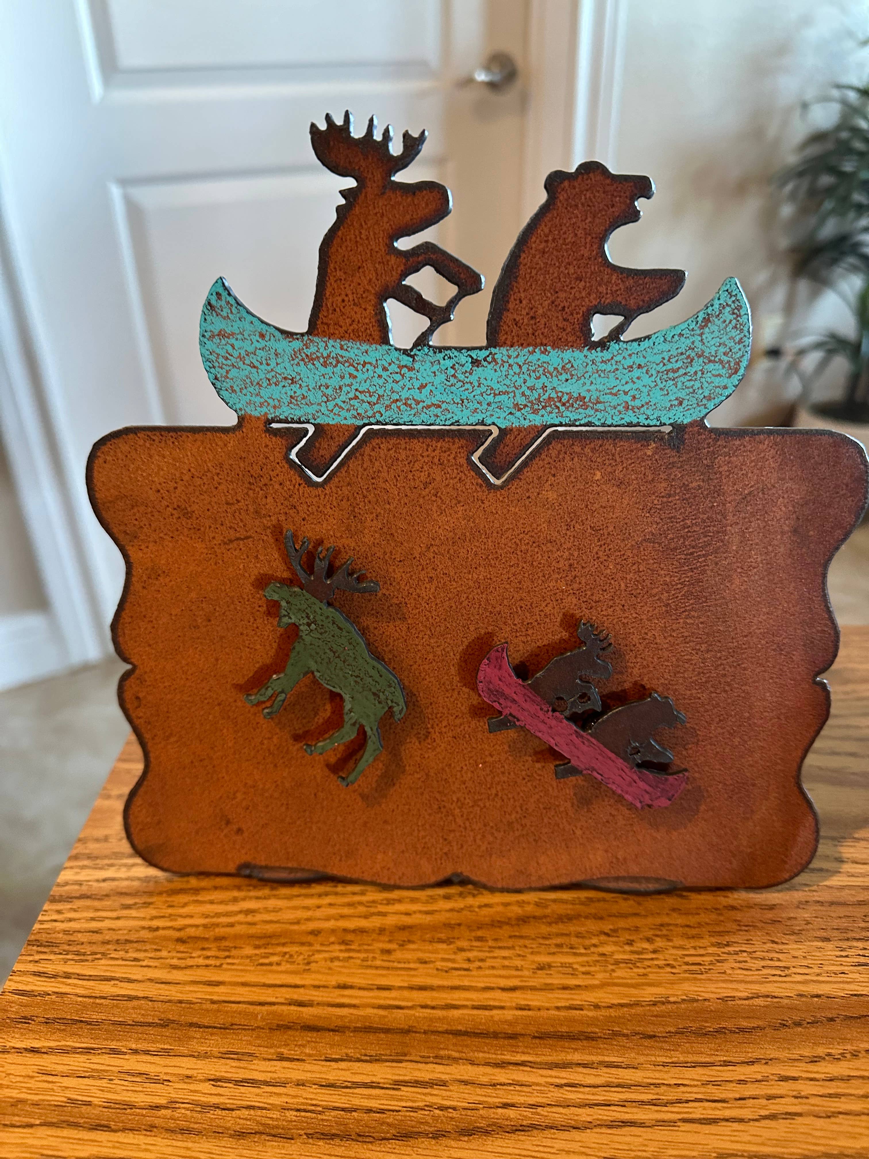 You can add the latest snapshots of your special someone to our magnet frame. Our affordable painted metal Picture Frame holds pictures or memos and takes the hassle out of displaying photos . Our frames accommodate several photo sizes: wallets, 3x5, 4x4, 4x6, 5x5. Comes with two magnets and painted in assorted colors. Our Metal art magnets are designed to be combined with Whimsies frames and memo boards to create whimsical, colorful, personalized art for your home. Our metal is steel with a patina finish, clear coat of polyurethane to protect the surface. All our products are proudly made in our studio in Texas using US steel. Small Batch Maker