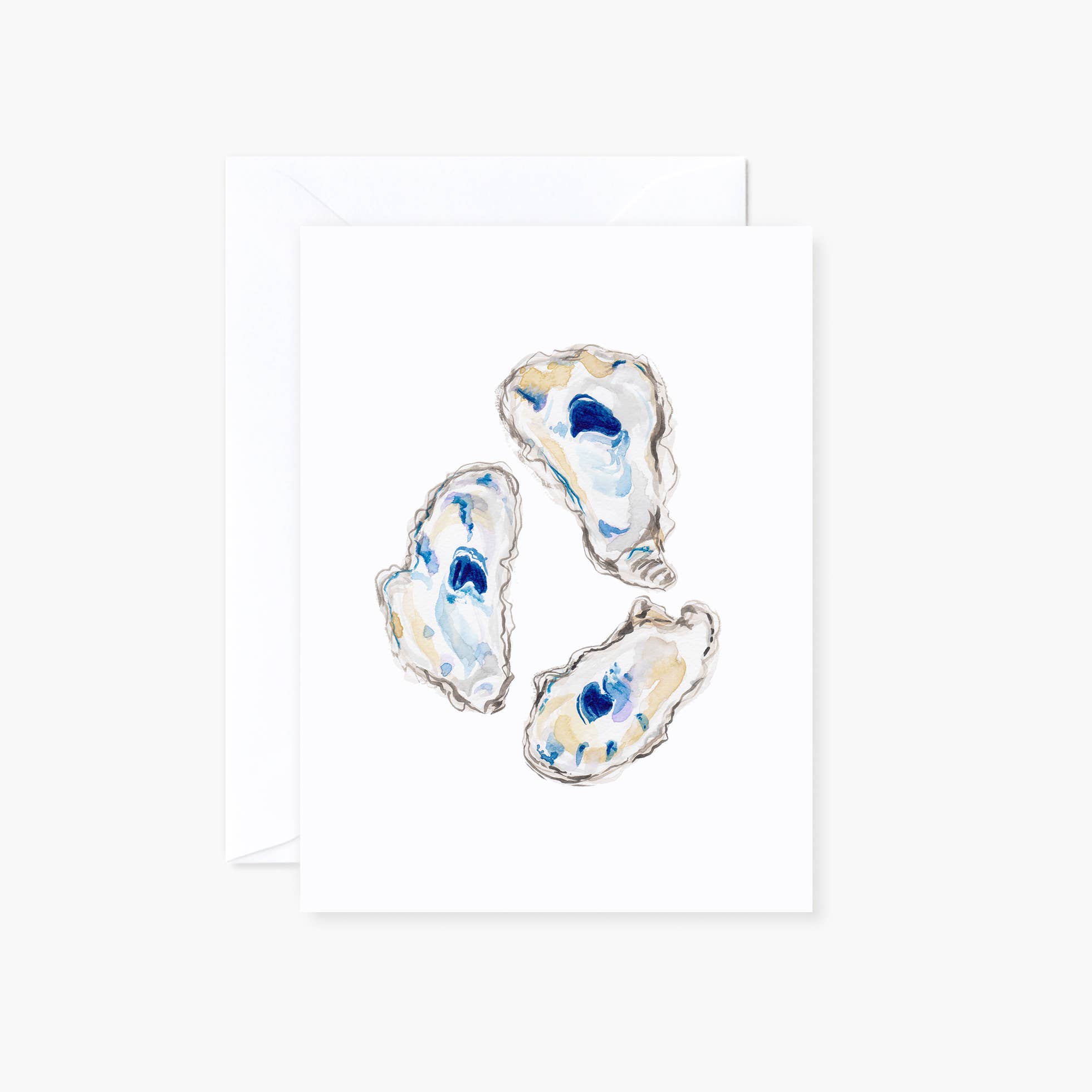 Don't clam up, and send the perfect thank you note with these shuckin' good card. Printed on 110 lb watercolor texture paper. A2 Size: 4.25" x 5.5". Blank inside. Kraft envelope included. Cards come in clear plastic sleeve or clear card box for set of 6.