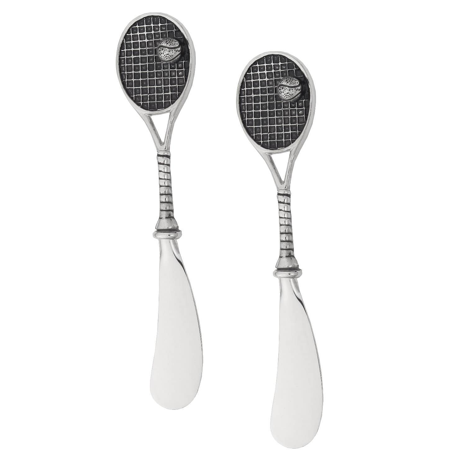 With elegant and creative design, gives the perfect accent to any table. They are perfect for gift baskets or simply for your own personal use! Provide decorative theme and variety to your table. We have so many patterns for you to choose from, come to pick them for home entertaining! Useful for spreads, dips, and soft cheeses. Both charming and practical Size: 5 1/2" L Material: Zinc Alloy Care & Clean: Hand Wash Only Includes: 2-PC, The unique tennis racquet-inspired design. It can be an accessory to and beautiful dinnerware that you have.