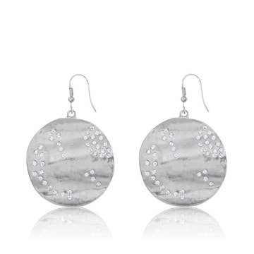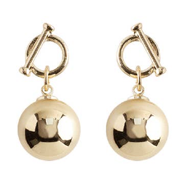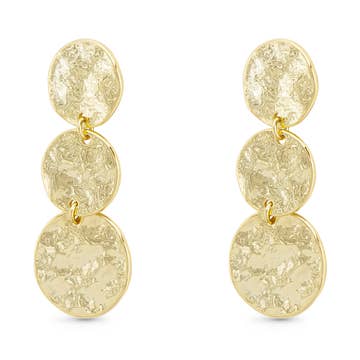 Simple yet a true jewelry staple, these earrings feature simple medium sized shell discs, dangling from small circle posts. PRODUCT DETAILS: Materials: Pewter metal plated with 24 kt gold. Measurements: 1" long. Earring closure: Post back. Weight: 0.05 oz