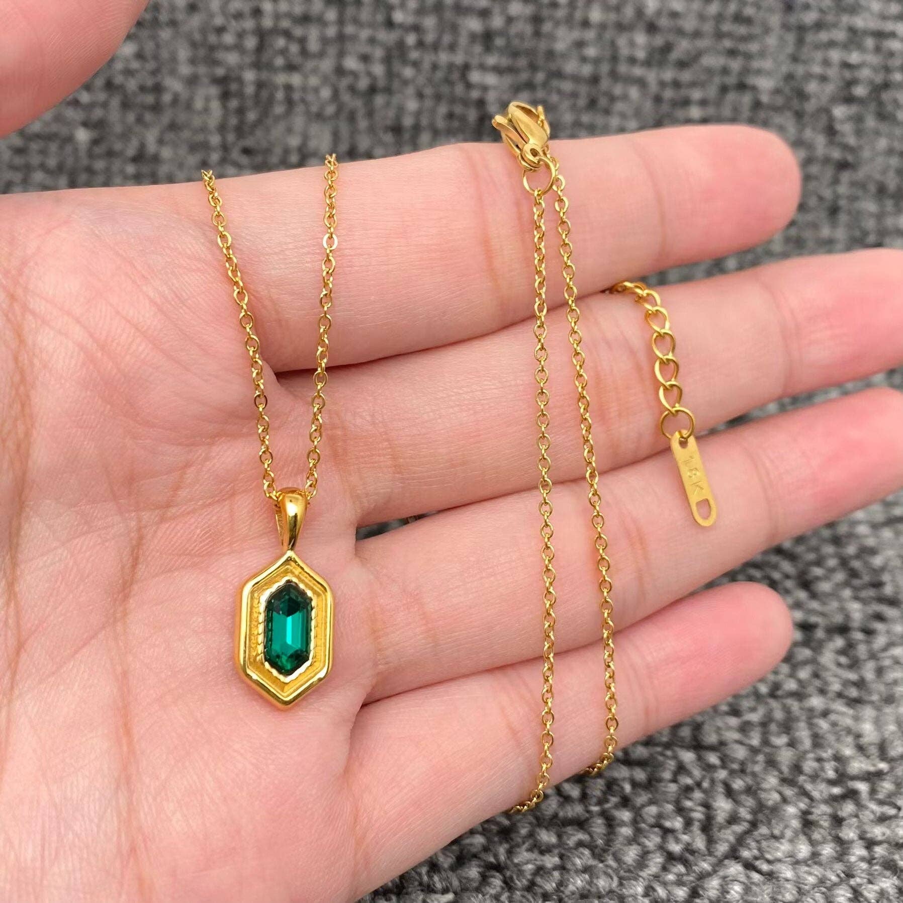 Type: pendant necklace Material: 316L Stainless steel ,Stone,18K gold plated Size of pendant : Please refer to the picture Length of chain : 420mm + 50mm Process: Vacuum electroplating and manual polishing,Non tarnish Surface : High Polish ★Made of high quality stainless steel,Lead-free,Harmless to Human Body. ★Perfect jewelry gifts