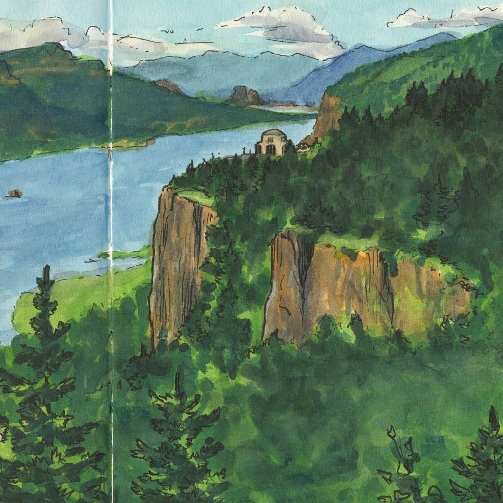 The south face of Mount Rainier towers over the banks of the Nisqually River, inside Mount Rainier National Park. The Nisqually River begins as a mountain glacier above Paradise, the most frequently-visited part of the park. The meltwater from the glacier tumbles downhill and before long grows into a swift stream full of wild rapids. As it continues downward, it widens, until it is the mighty river that empties into Puget Sound, feeding forests, prairies, wetlands and farm fields along the way. This 9 x 12 print is a reproduction of the original letterpress piece from “Local Conditions," a 15-print limited-edition series depicting Washington’s Mt. Rainier from a variety of vantage points. The original artwork was letterpress printed by hand on an antique Vandercook No. 4 press and then hand-painted with watercolor. Paper size is 12 x 9. —————————————————————————- This artwork is copyright Chandler O’Leary 2011. Copyright is not transferable with the sale of this print. The buyer is not entitled to reproduction rights. This print is packaged in a clear poly sleeve and will ship flat in a protective mailer via United States Postal Service. WA state residents are subject to sales tax.