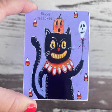 2.5'' x 3.5'' Halloween Greetings Cat & Moon Magnet