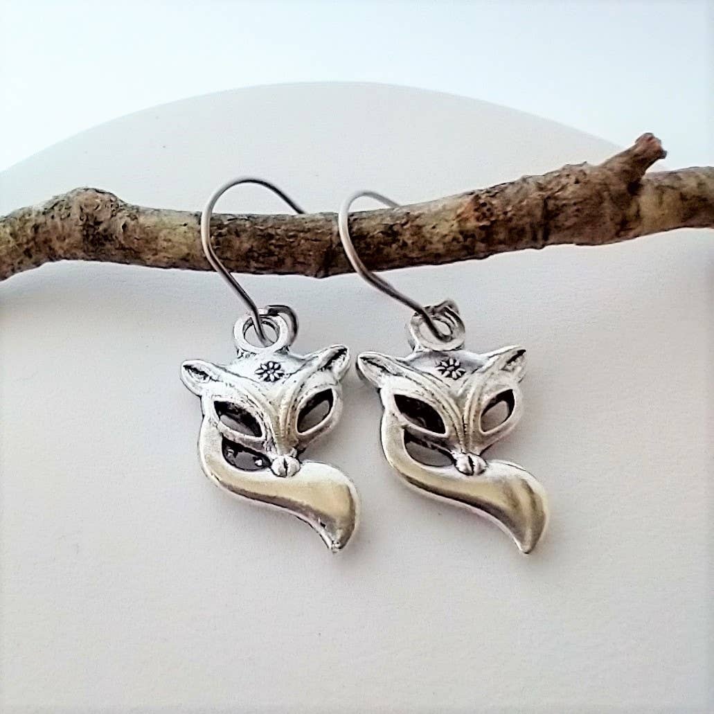 Silver Fox Earrings, Woodland Jewelry, Nature Earrings